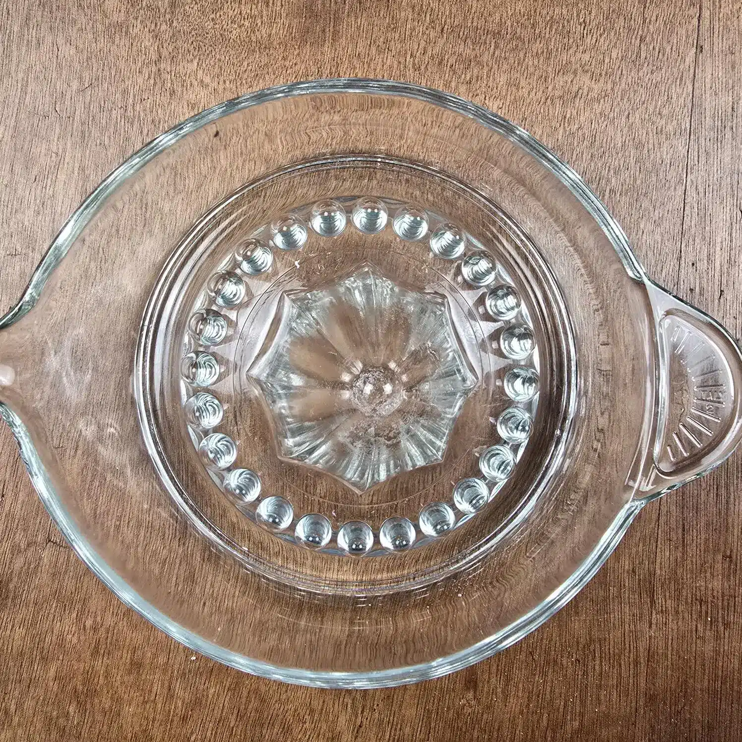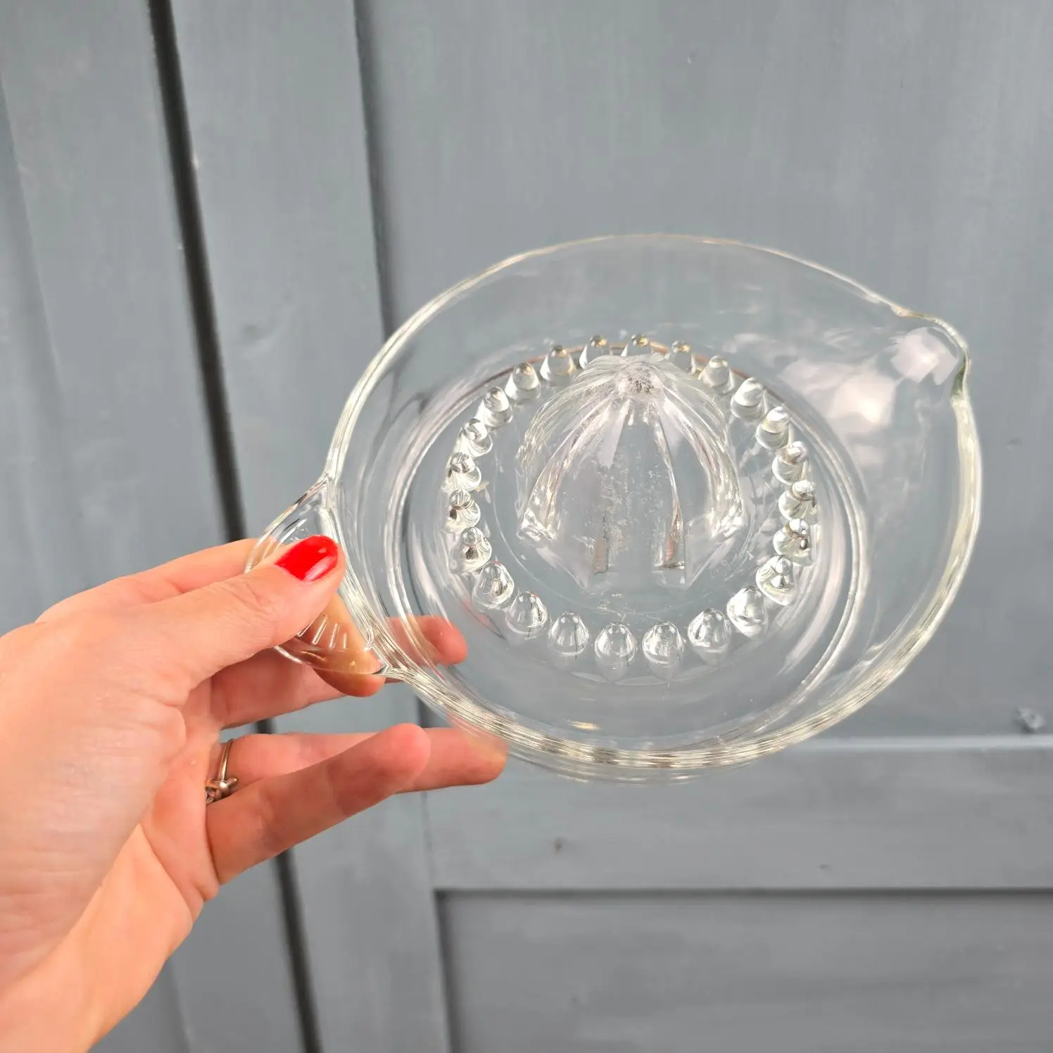 Ce grand presse-agrumes en verre transparent séduit par sa simplicité et son efficacité intemporelle. Fabriqué en Italie, il allie praticité et charme vintage : son large diamètre permet de presser facilement oranges, citrons ou pamplemousses, tandis que son bec verseur facilite le service.