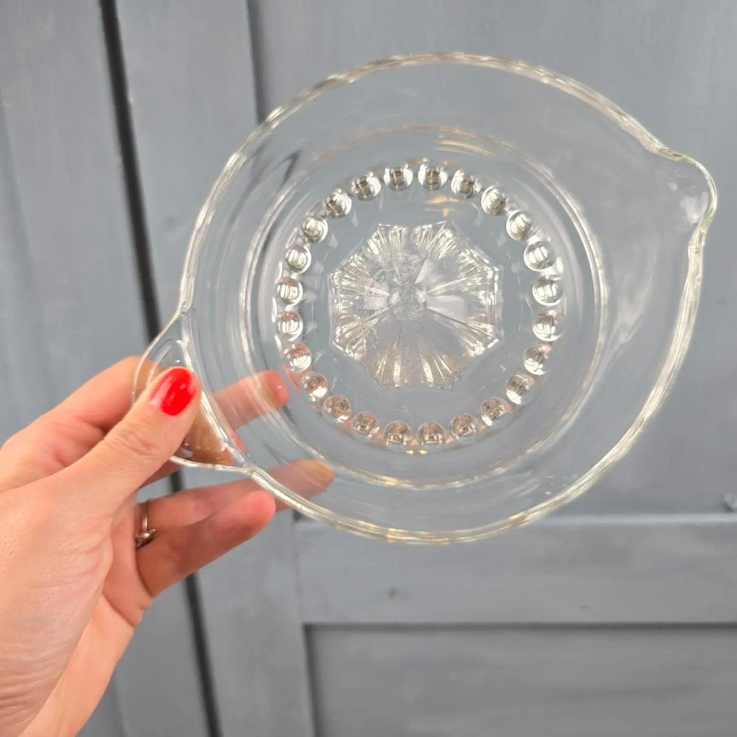 Avec sa belle brillance et sa transparence, il s’intègre parfaitement dans une cuisine rétro ou contemporaine. Une pièce robuste, en excellent état, prête à reprendre du service pour vos jus maison ou à s’exposer fièrement comme objet déco.