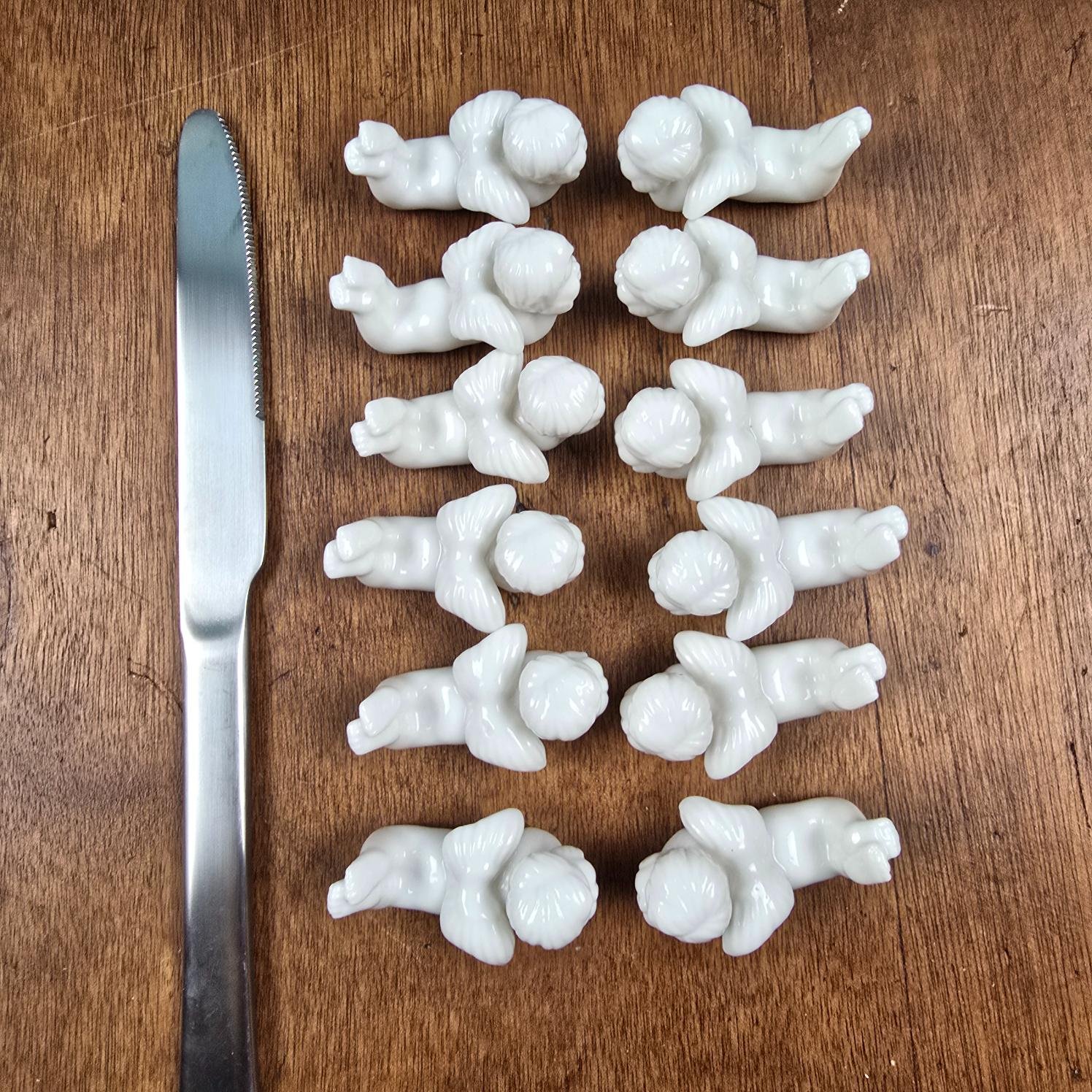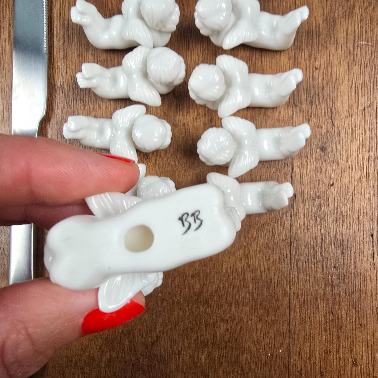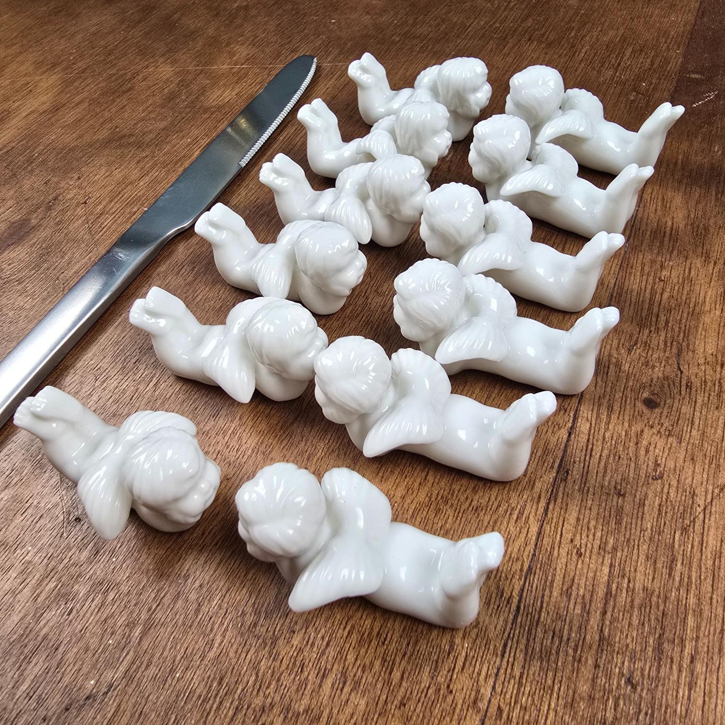 Lot de 12 repose-couteaux anges en porcelaine, marque BB