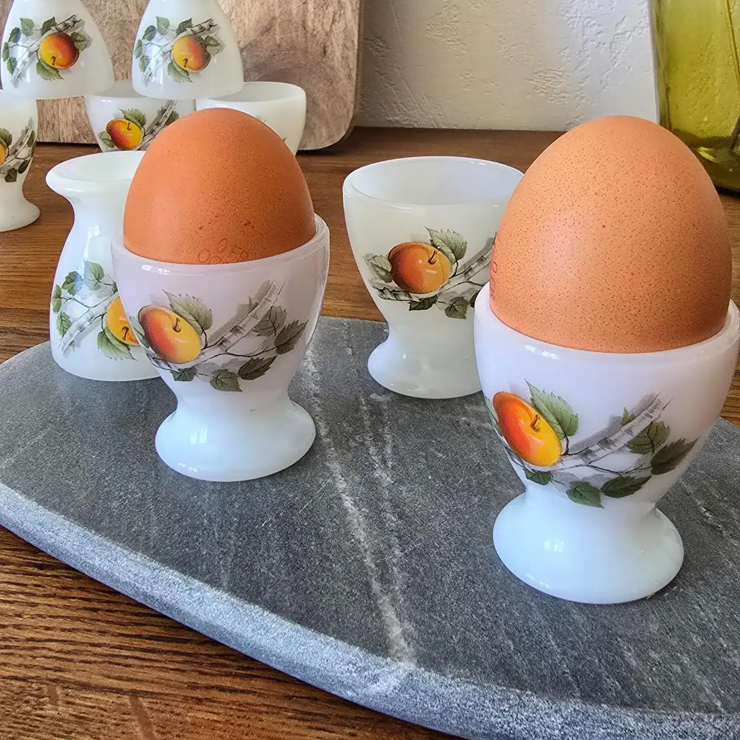 Ces coquetiers étaient les complices des matins gourmands. On les retrouve sur les tables de cuisine familiale, entre tartines et chocolat chaud, toujours prêts à accueillir l’œuf à la coque du dimanche.