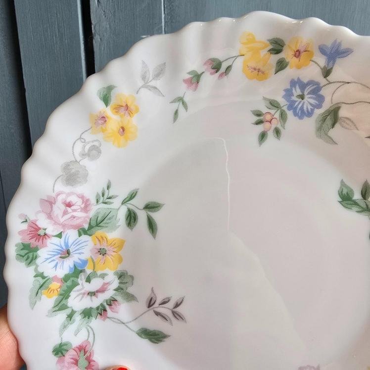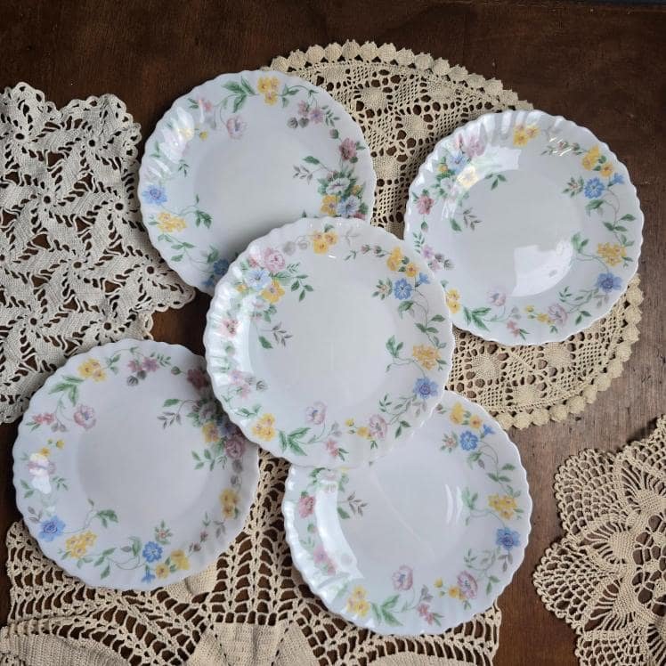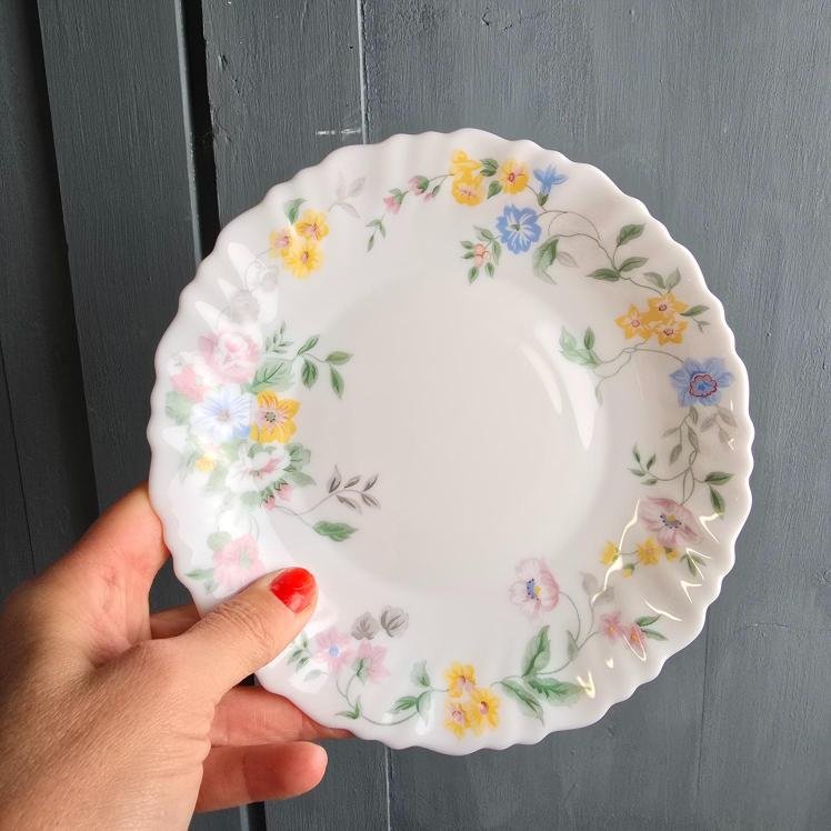Le décor Hortense fait partie des séries Arcopal les plus emblématiques : un bouquet pastel délicat, pensé pour accompagner les tables familiales des années 70–80.