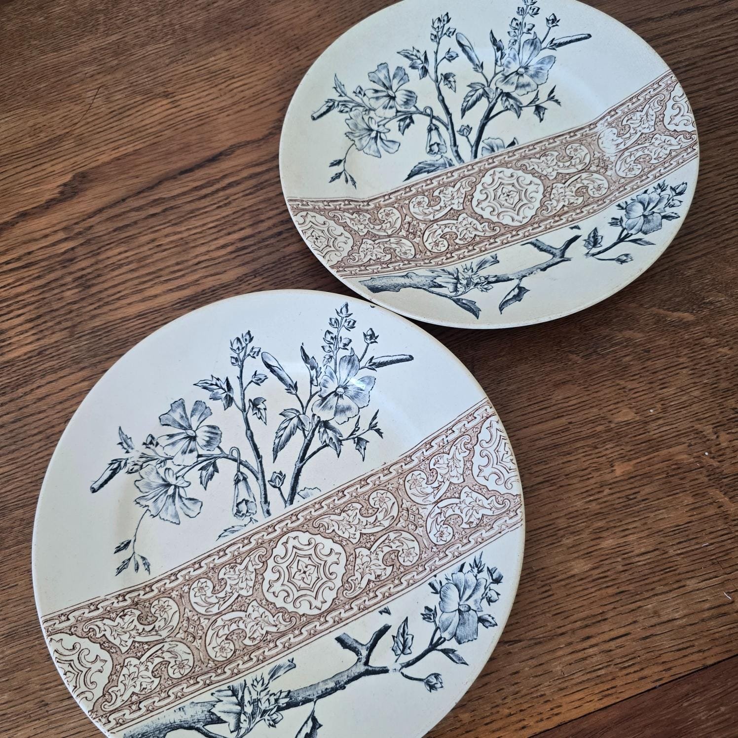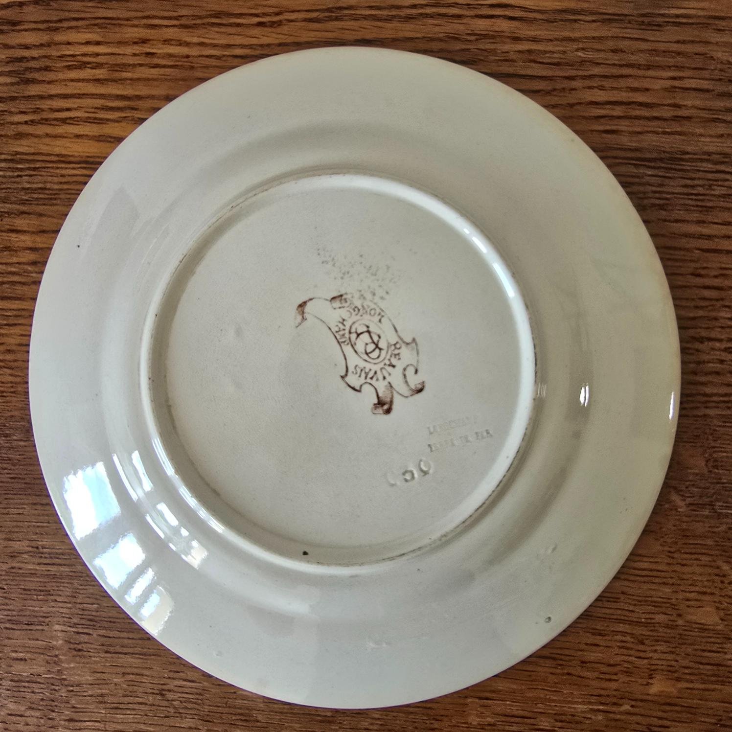 Lot de deux assiettes semi-creuses Terre de Fer signées Longchamp, modèle Beauvais, produites probablement entre 1880 et 1910.