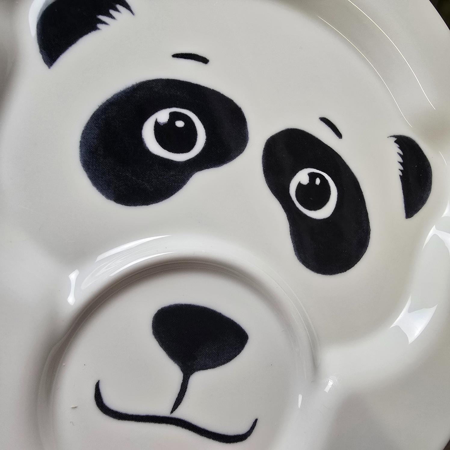Conçue dans une porcelaine blanche brillante, elle présente un relief en forme de tête de panda, où chaque détail du visage — oreilles, museau, et regard malicieux — est délicatement peint en noir et blanc.