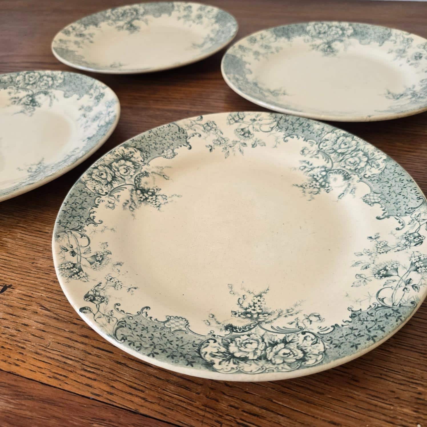Lot 4 assiettes anciennes modèle Fécamp, Terre de Fer