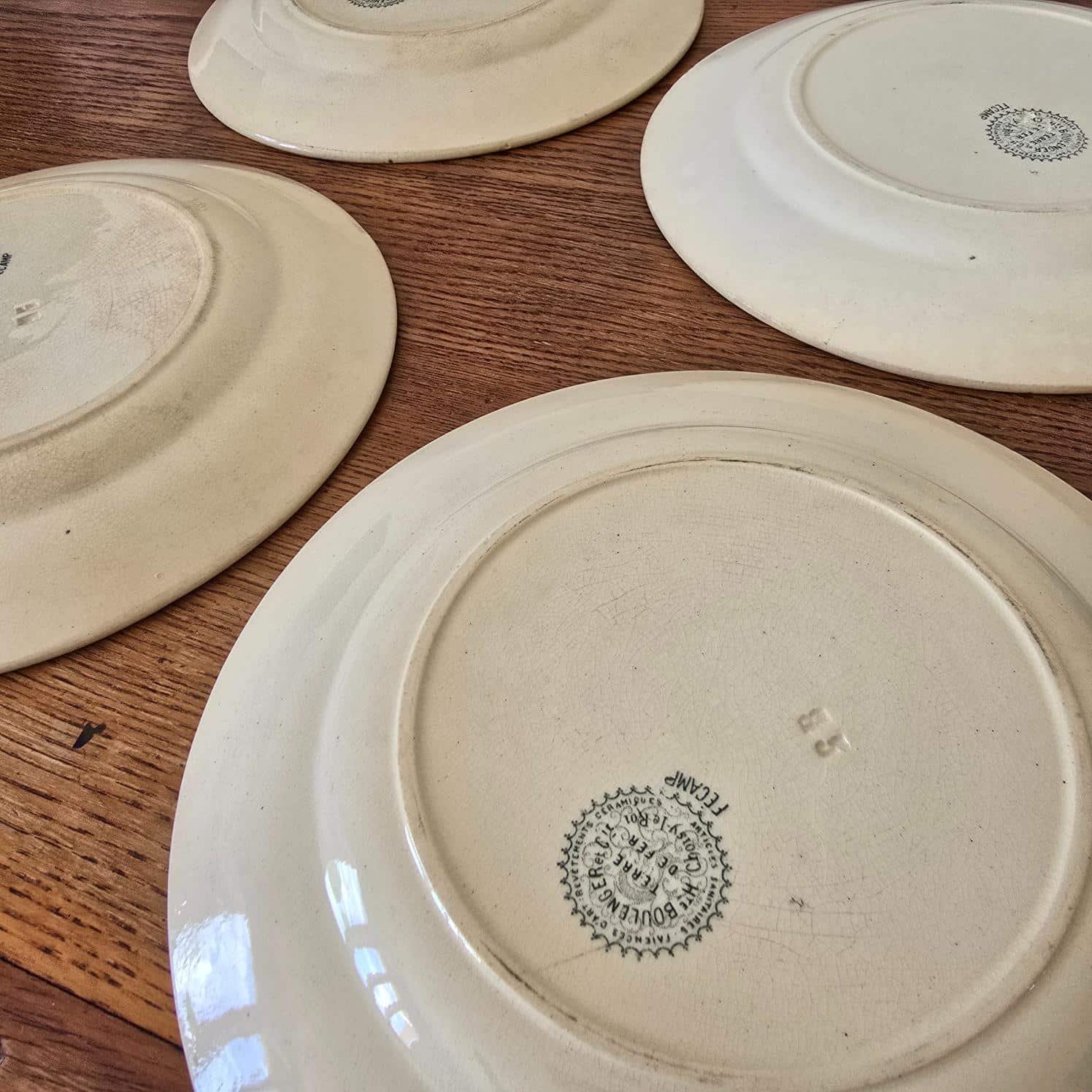 Lot de quatre assiettes anciennes en Terre de Fer, estampillées Boulenger & Cie – Choisy-le-Roi, modèle Fécamp.