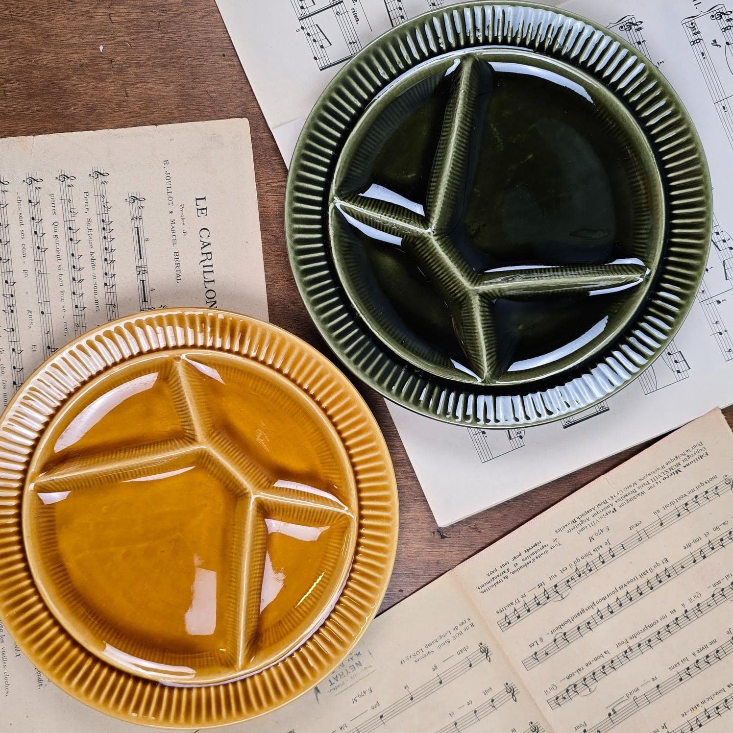 Leur design compartimenté typique des années 60/70 rappelle les grandes tablées d’hiver, les rires autour du caquelon et les verres de vin qui tintent.