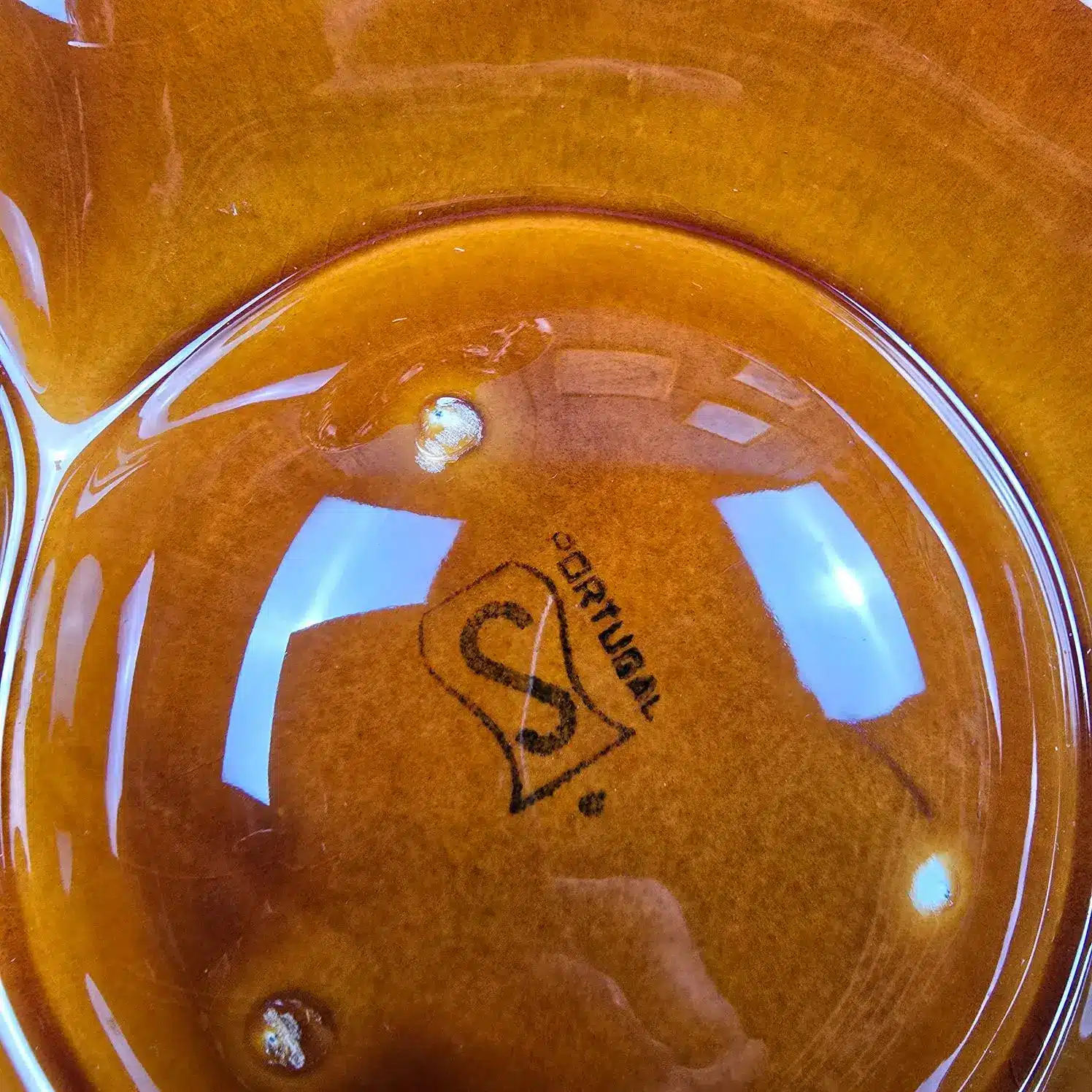 Lot de 8 superbes assiettes à artichaut en faïence Sicla Portugal, décorées en barbotine marron glacé avec motifs végétaux en relief.