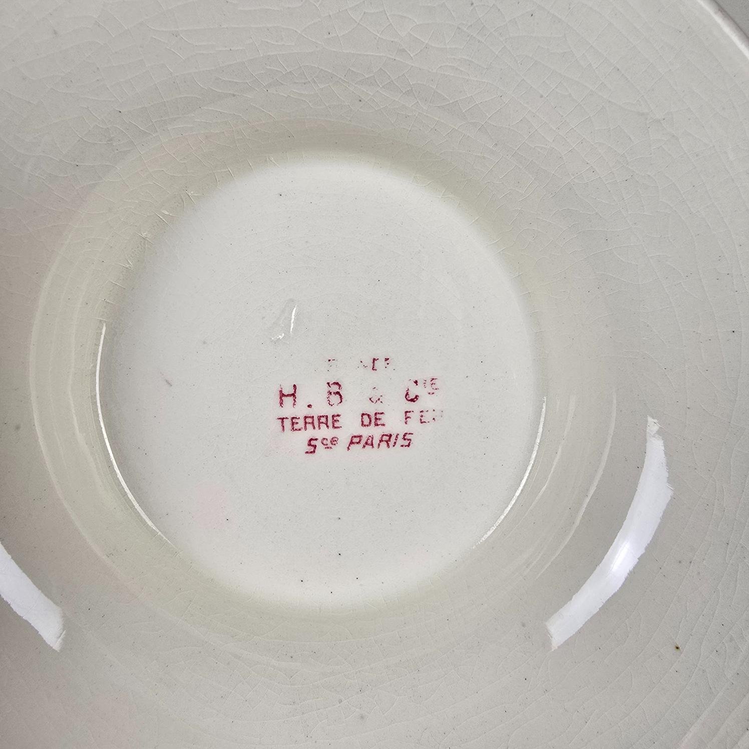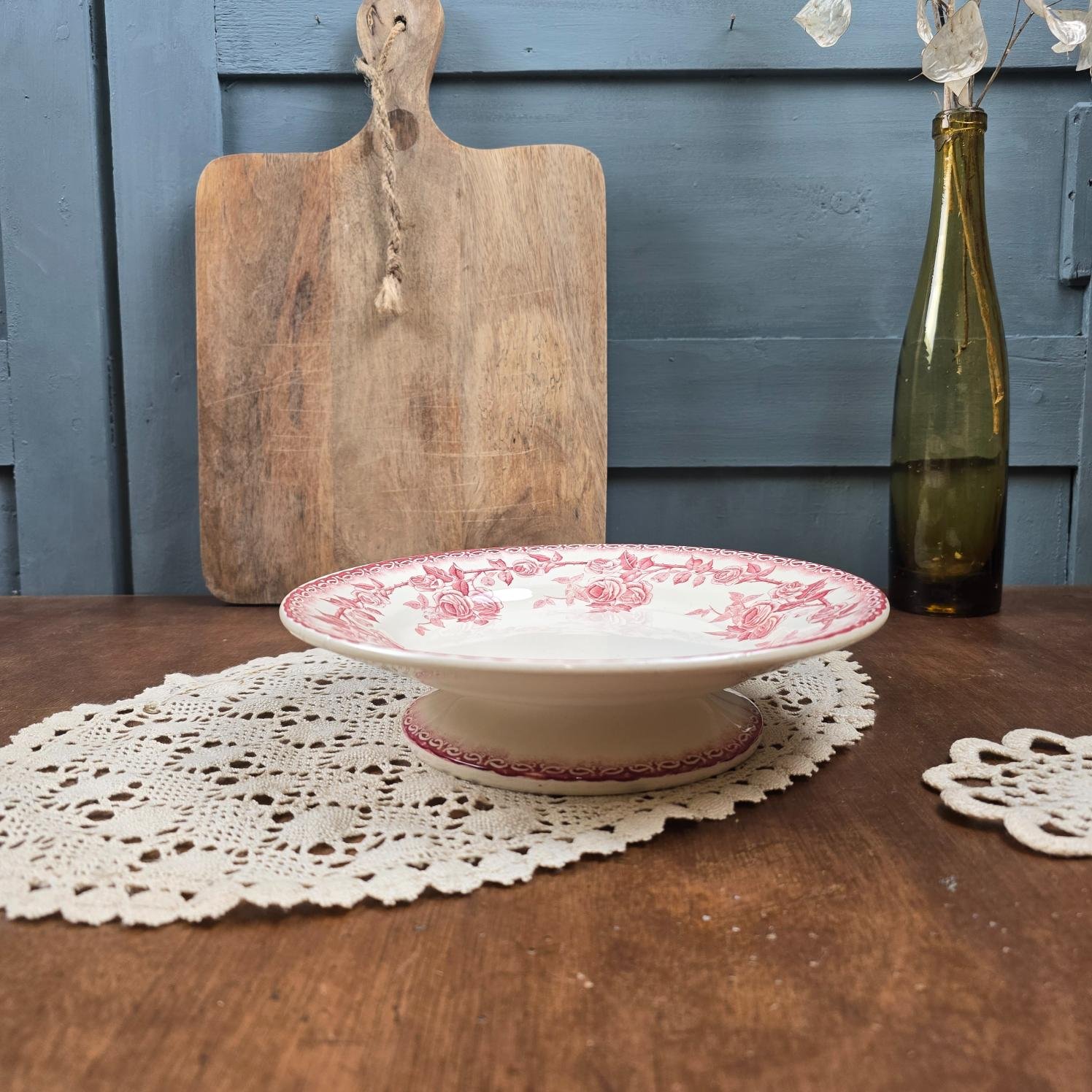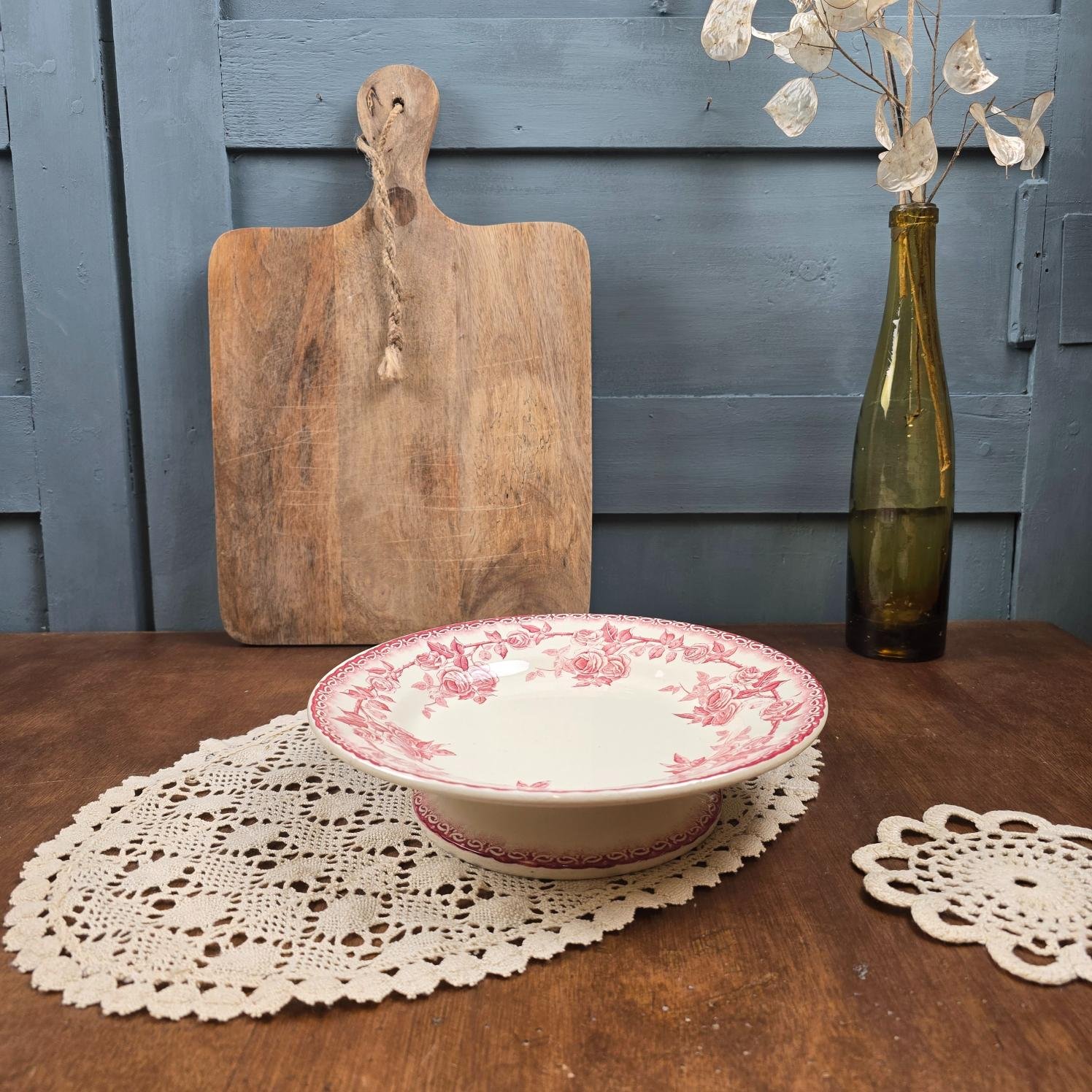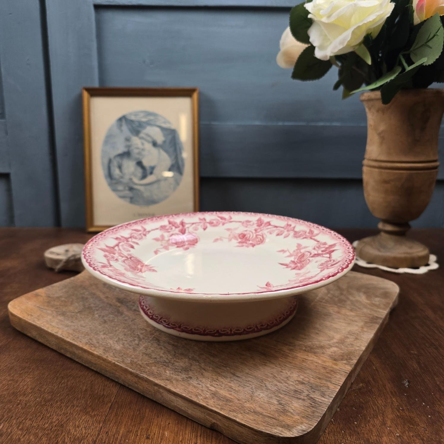 Un ravissant compotier ancien sur pied signé HB & Cie, délicatement décoré d’un motif de roses dans un rose profond typique des productions du début XXᵉ siècle.