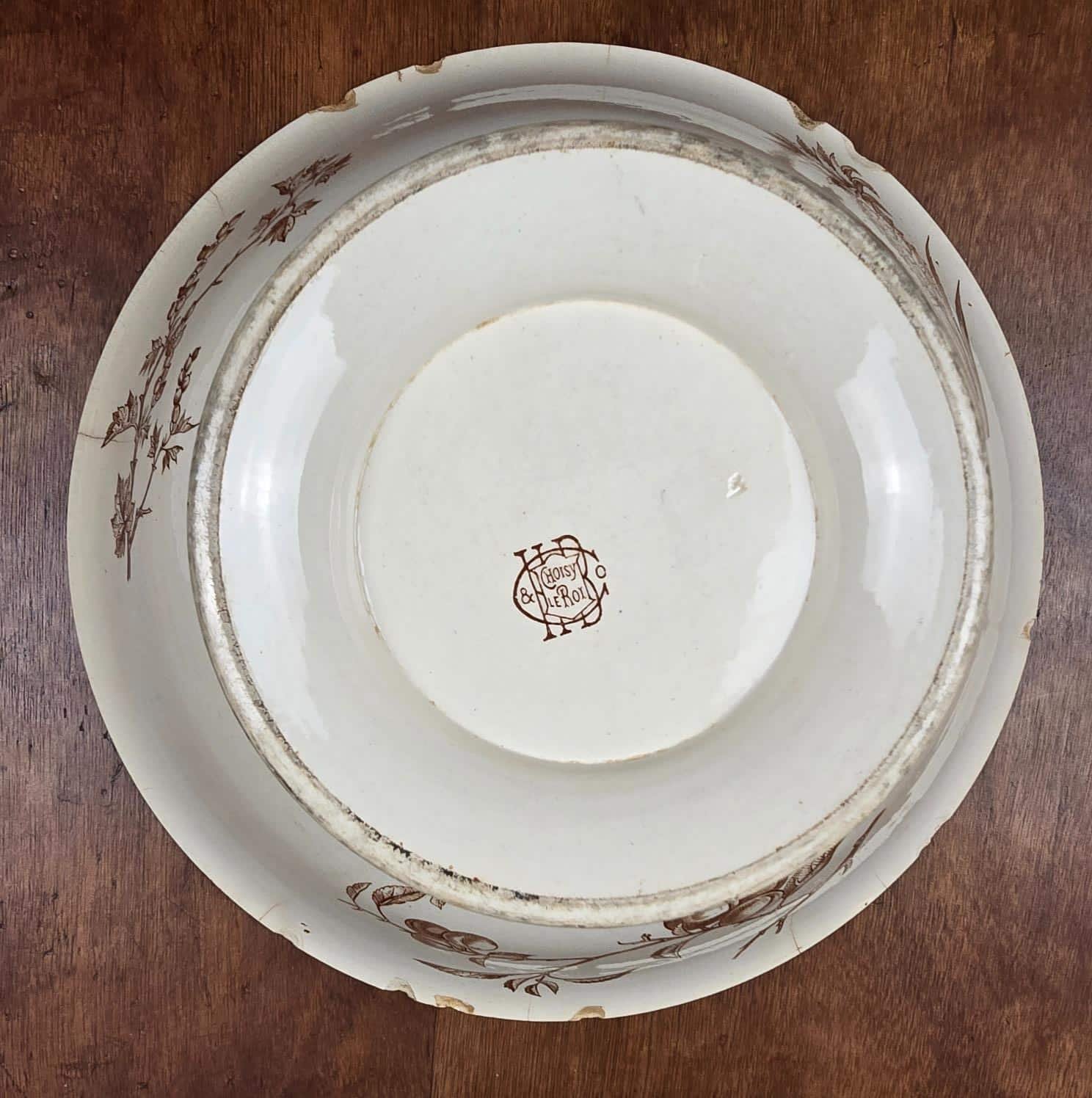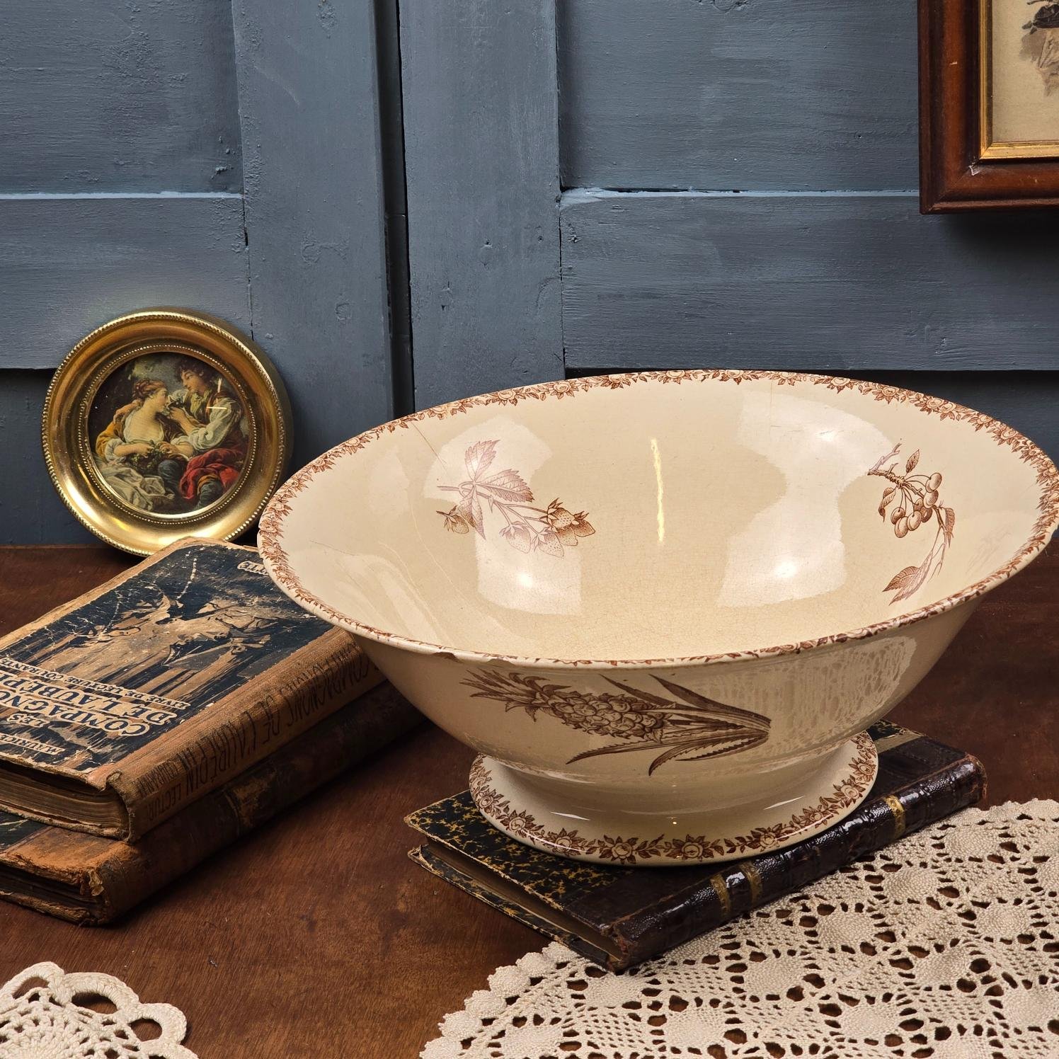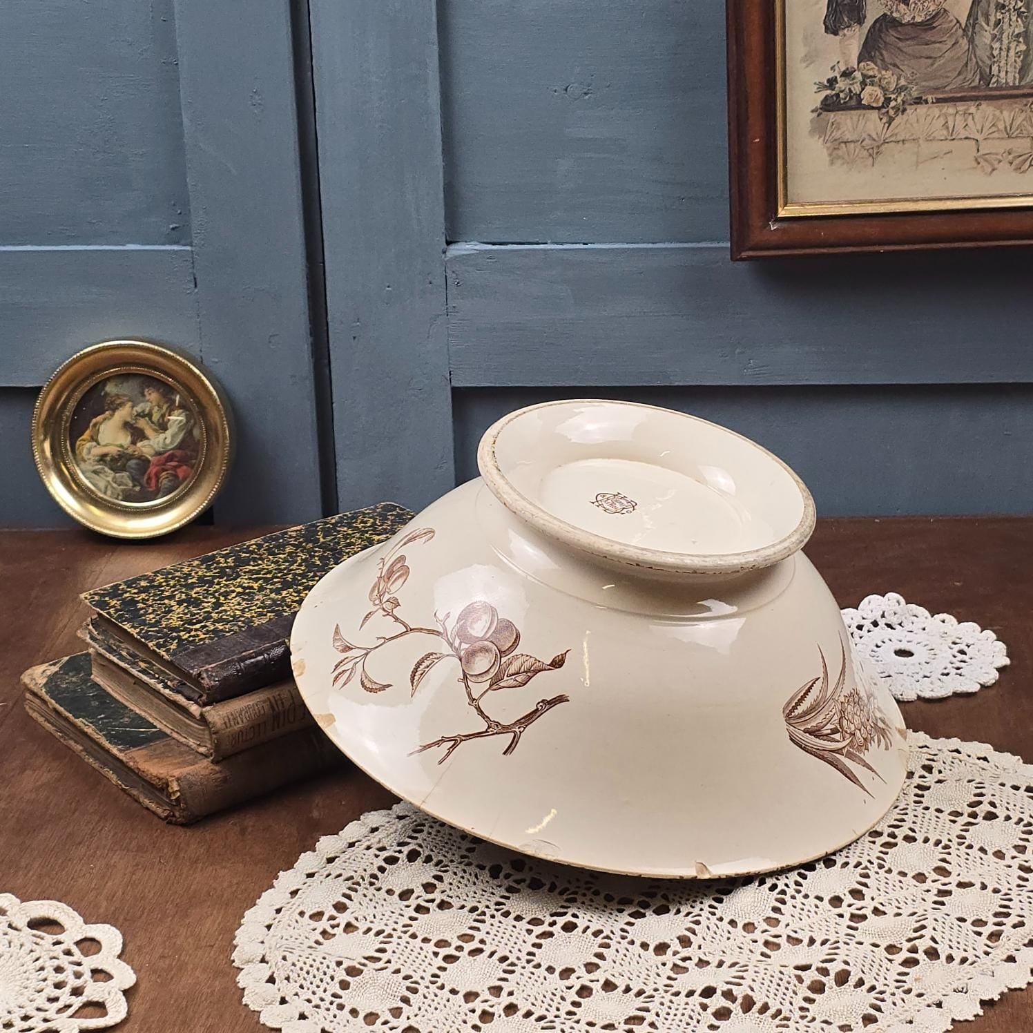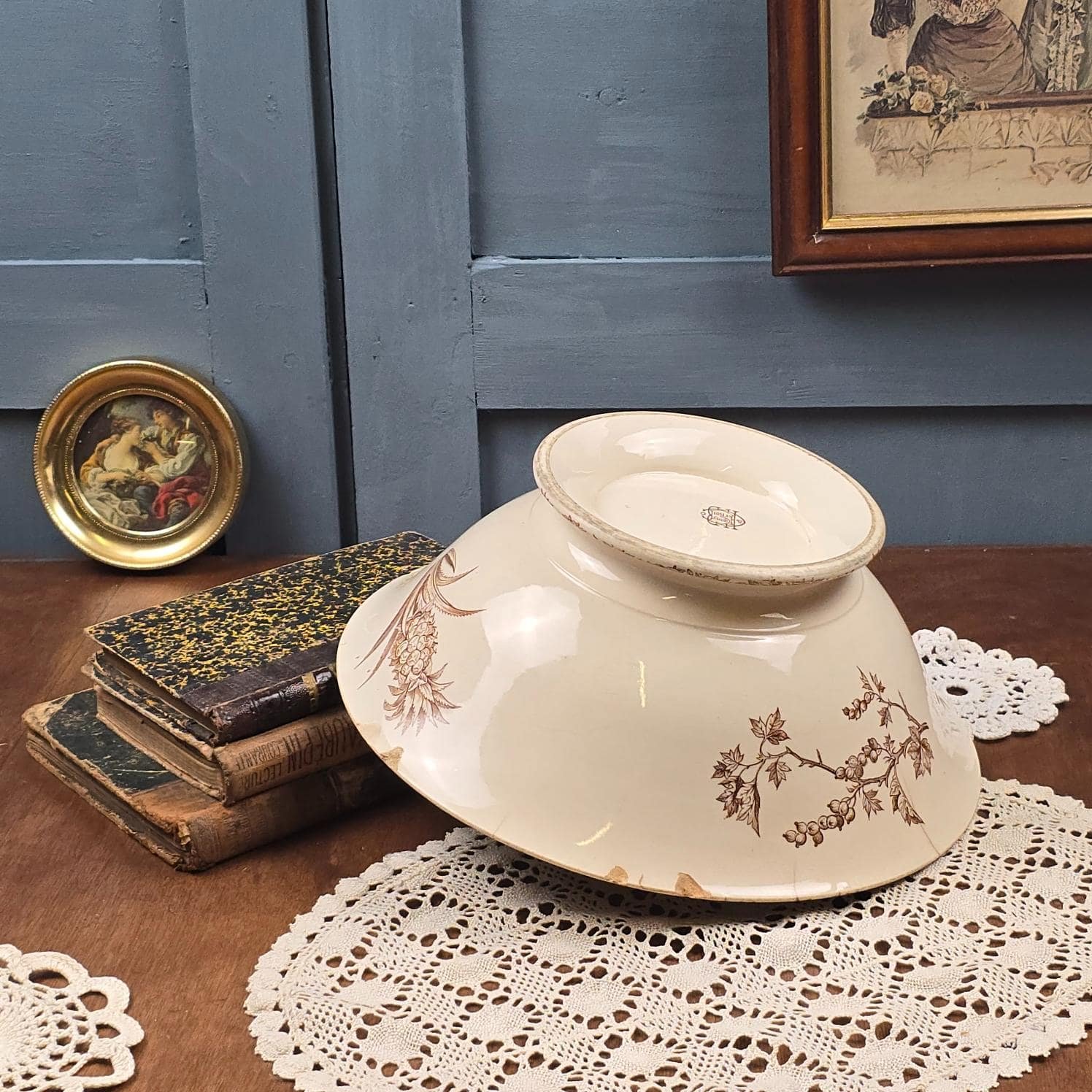 Grand saladier ancien décor sépia – Patine & éclats de charme – Choisy-le-Roi