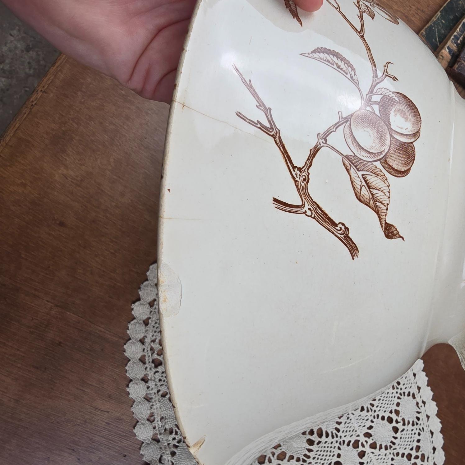 🔍 État : Plusieurs éclats et fêles visibles, belle patine, décor sépia intact et lumineux (bien regarder les photos)