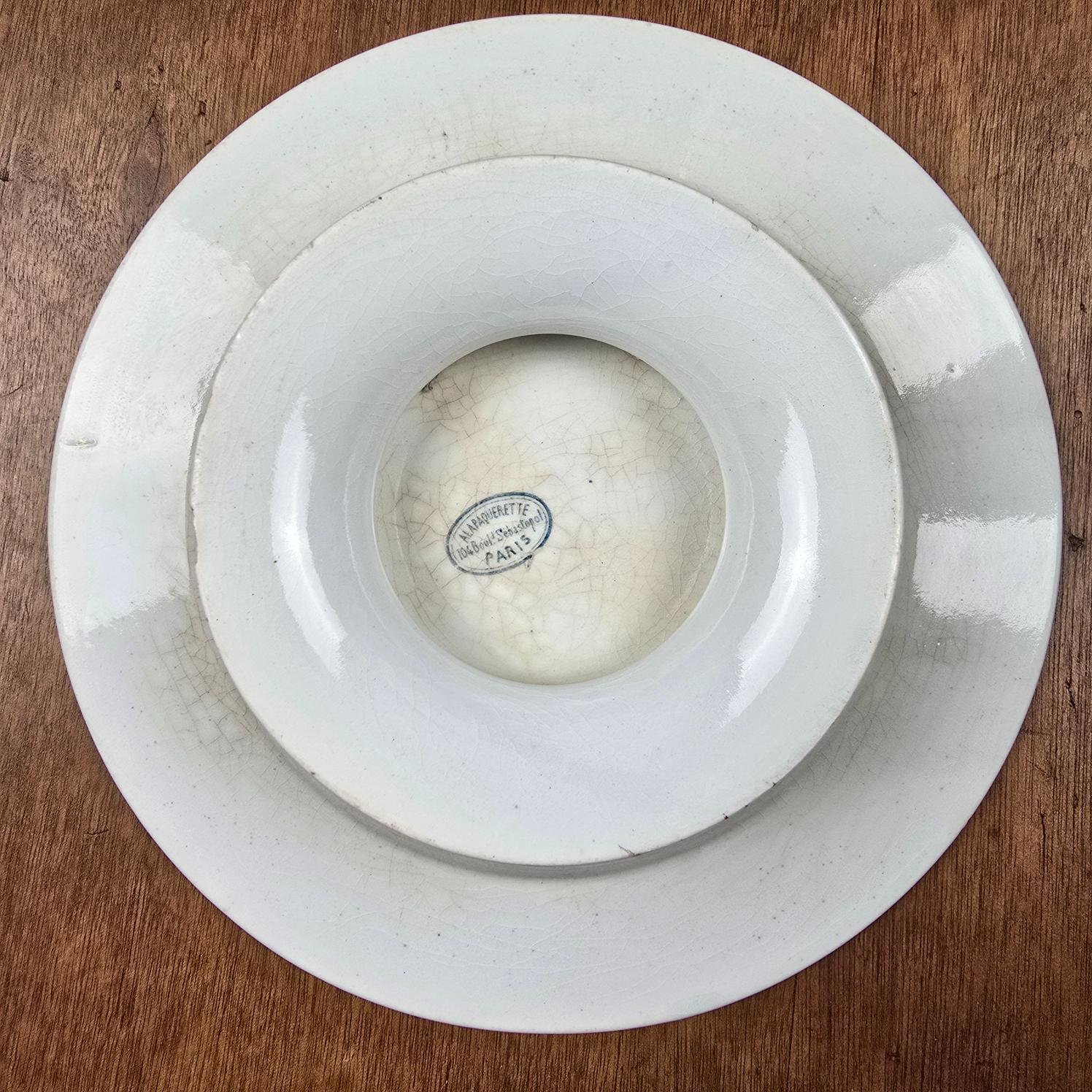Plat ancien sur pied décor sépia bucolique, À la Pâquerette Paris