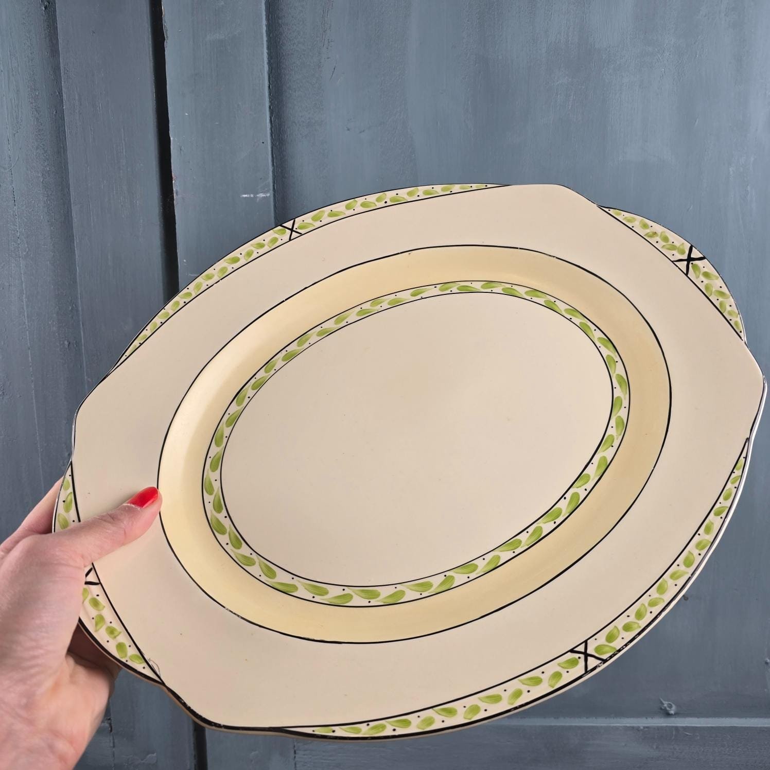 Plat ovale anglais Burleigh Ware – Crème & vert – Made in England