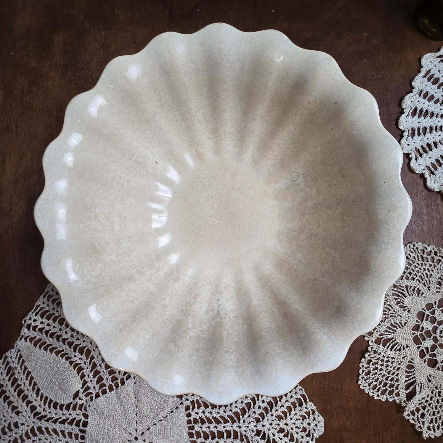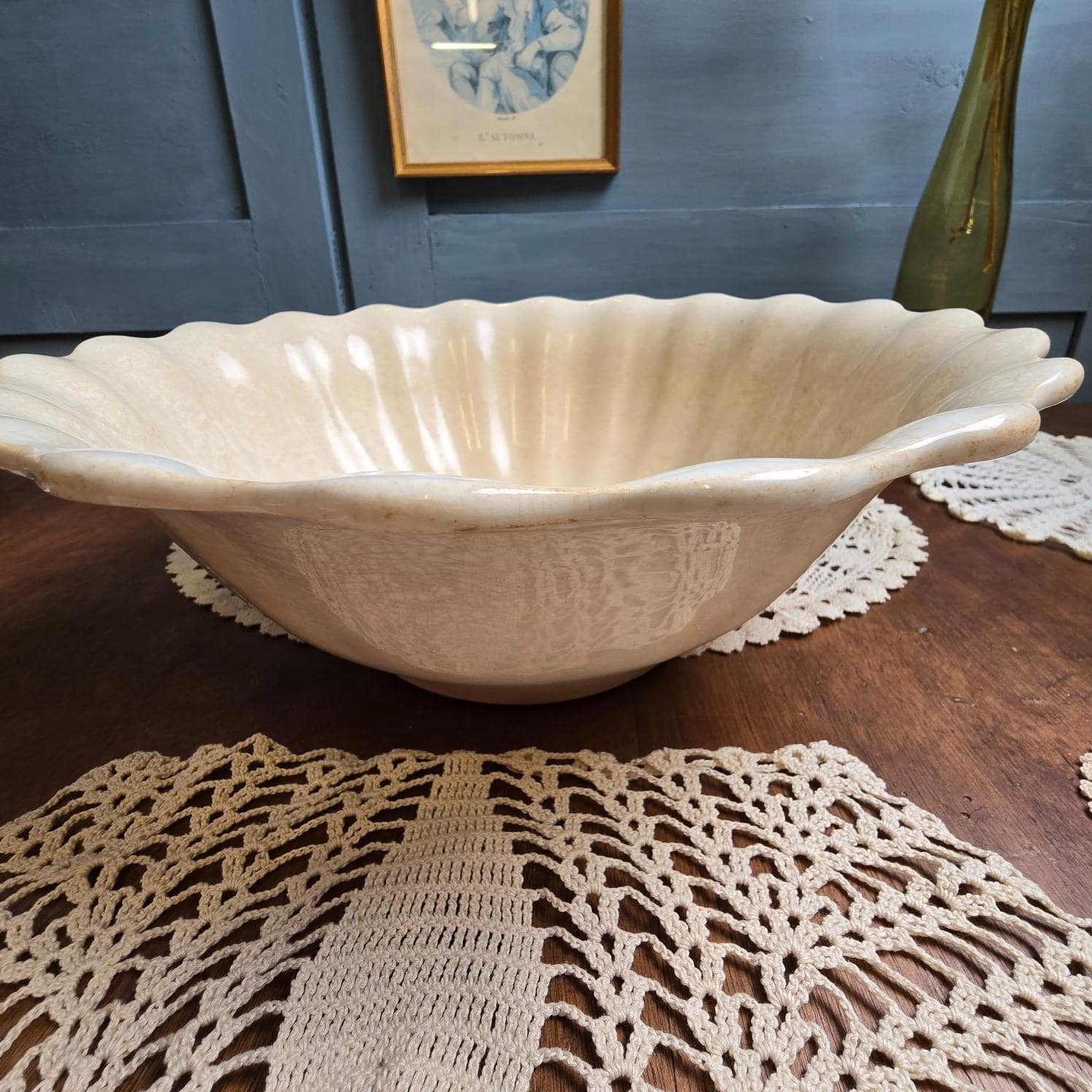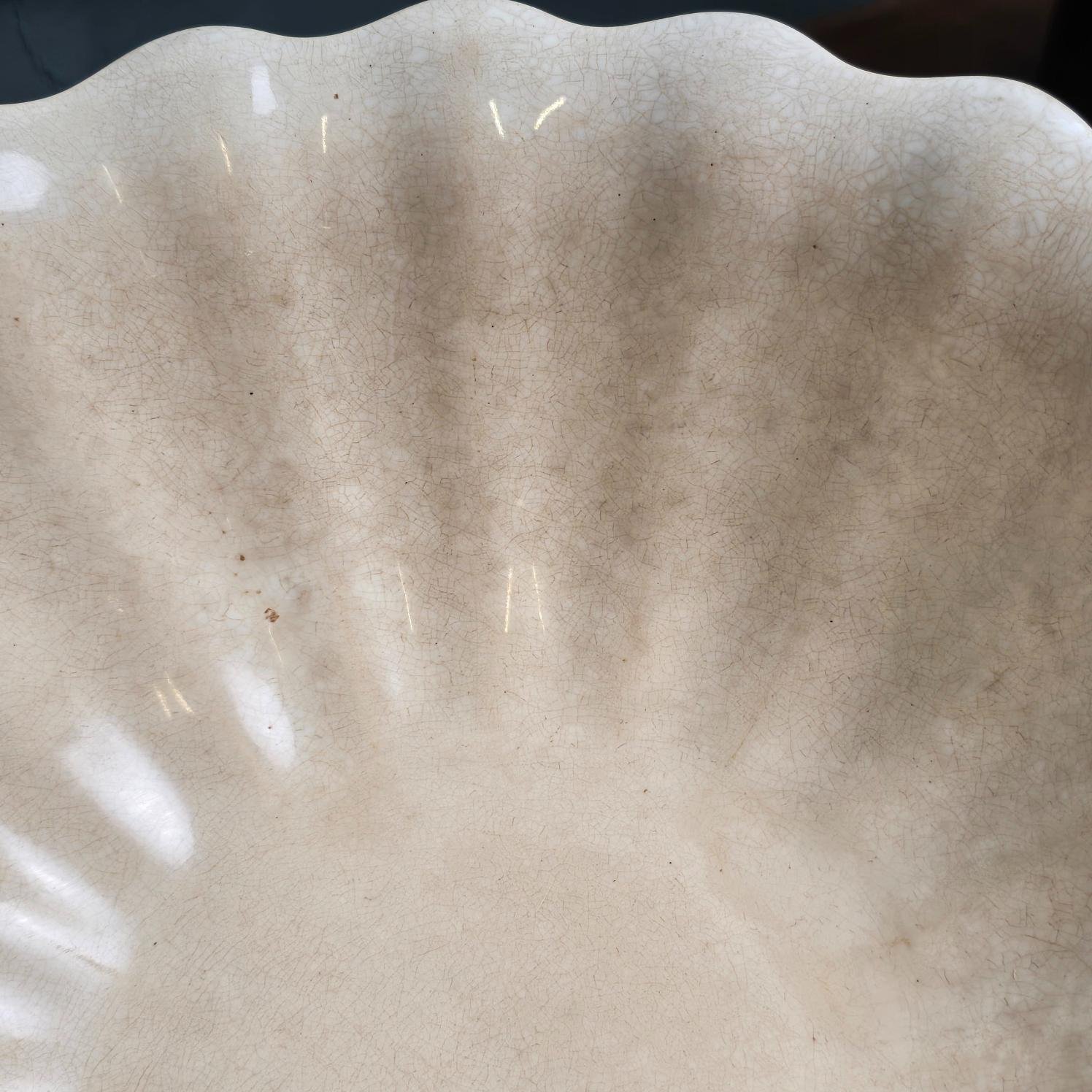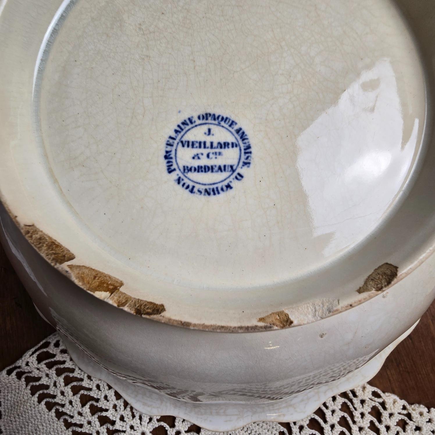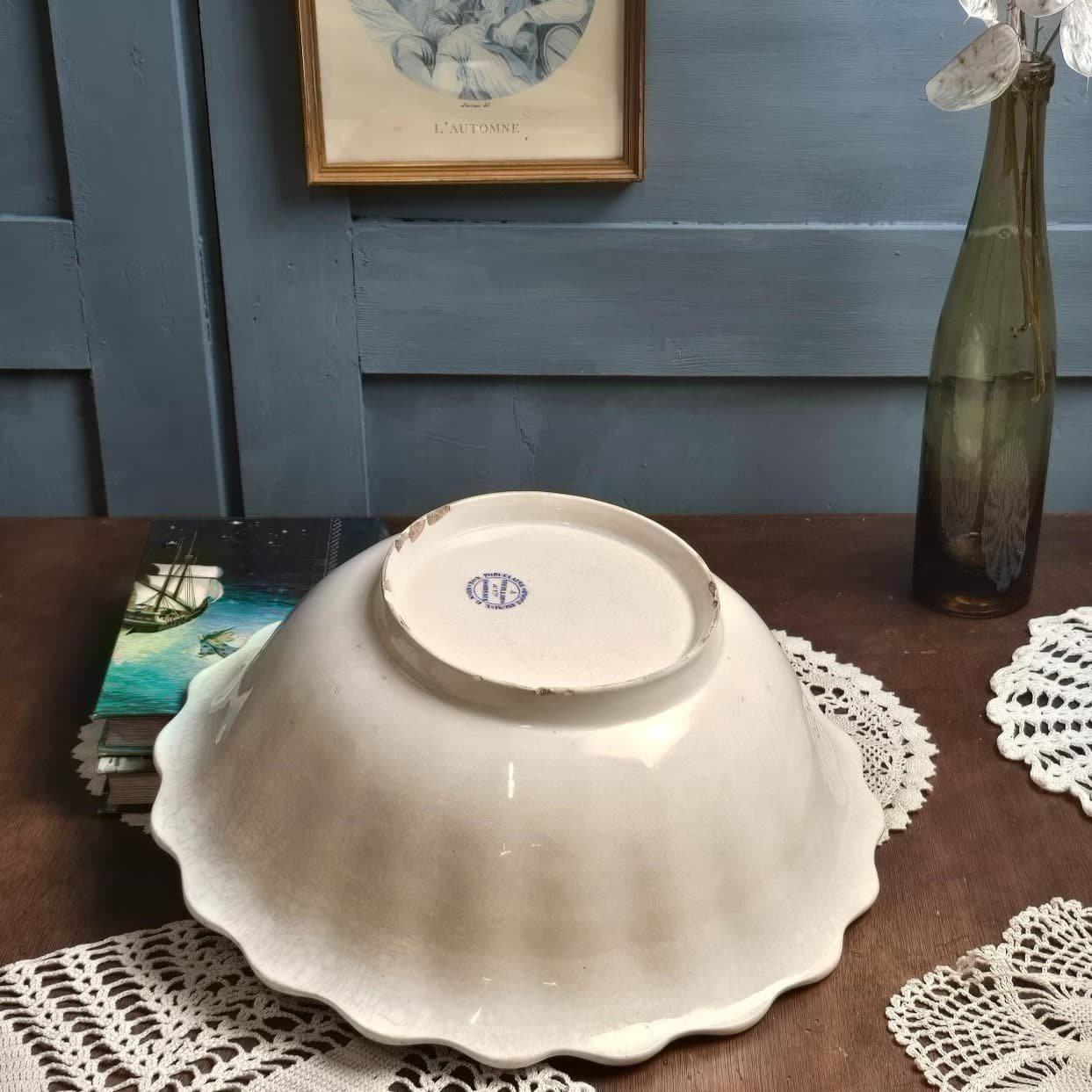 Ce magnifique saladier ancien signé Jules Vieillard & Cie Bordeaux séduit par sa forme ondulée évoquant un coquillage et sa patine naturelle sublime.
