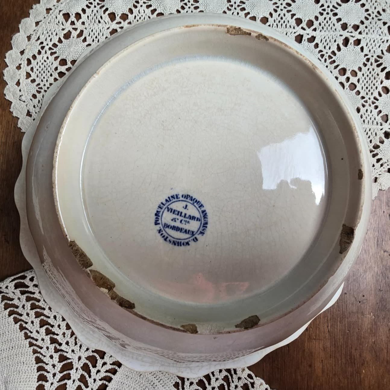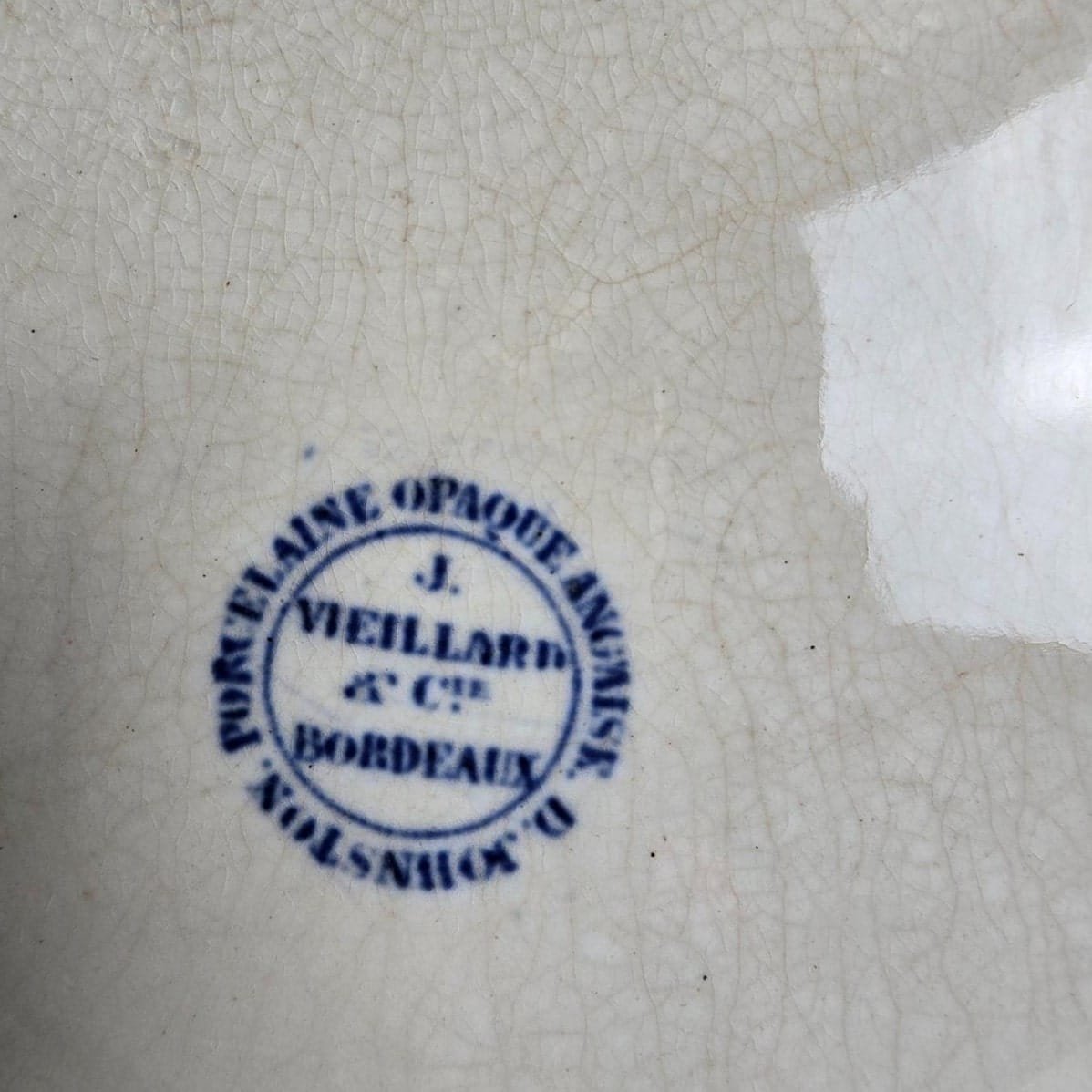 Réalisé en porcelaine opaque (typique des productions bordelaises du XIXᵉ siècle), il présente un émaillage craquelé et une belle teinte crème légèrement nuancée, témoins de son âge et de son authenticité.
