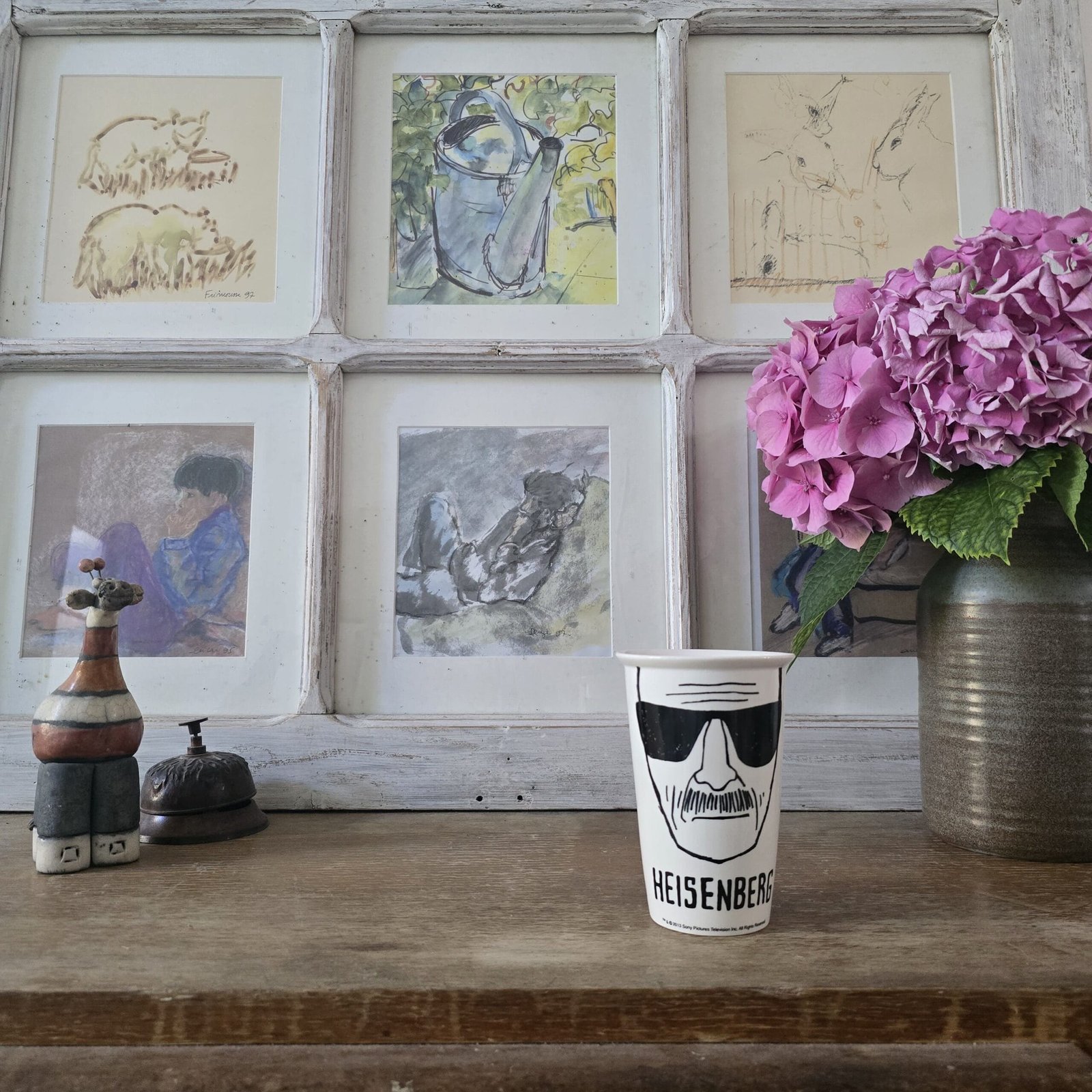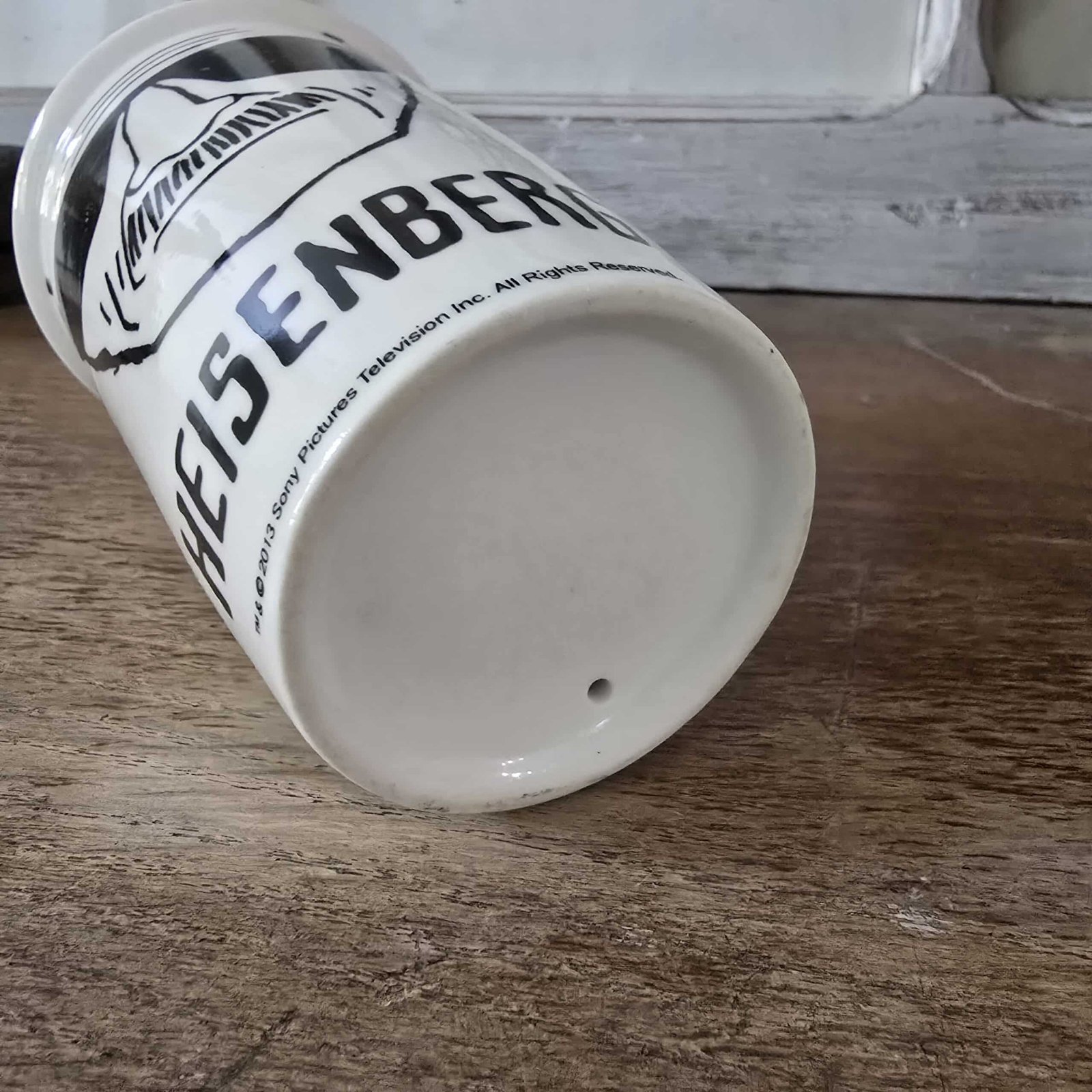 Travel Mug vintage en porcelaine à l’effigie d’Heisenberg, personnage culte de la série Breaking Bad.