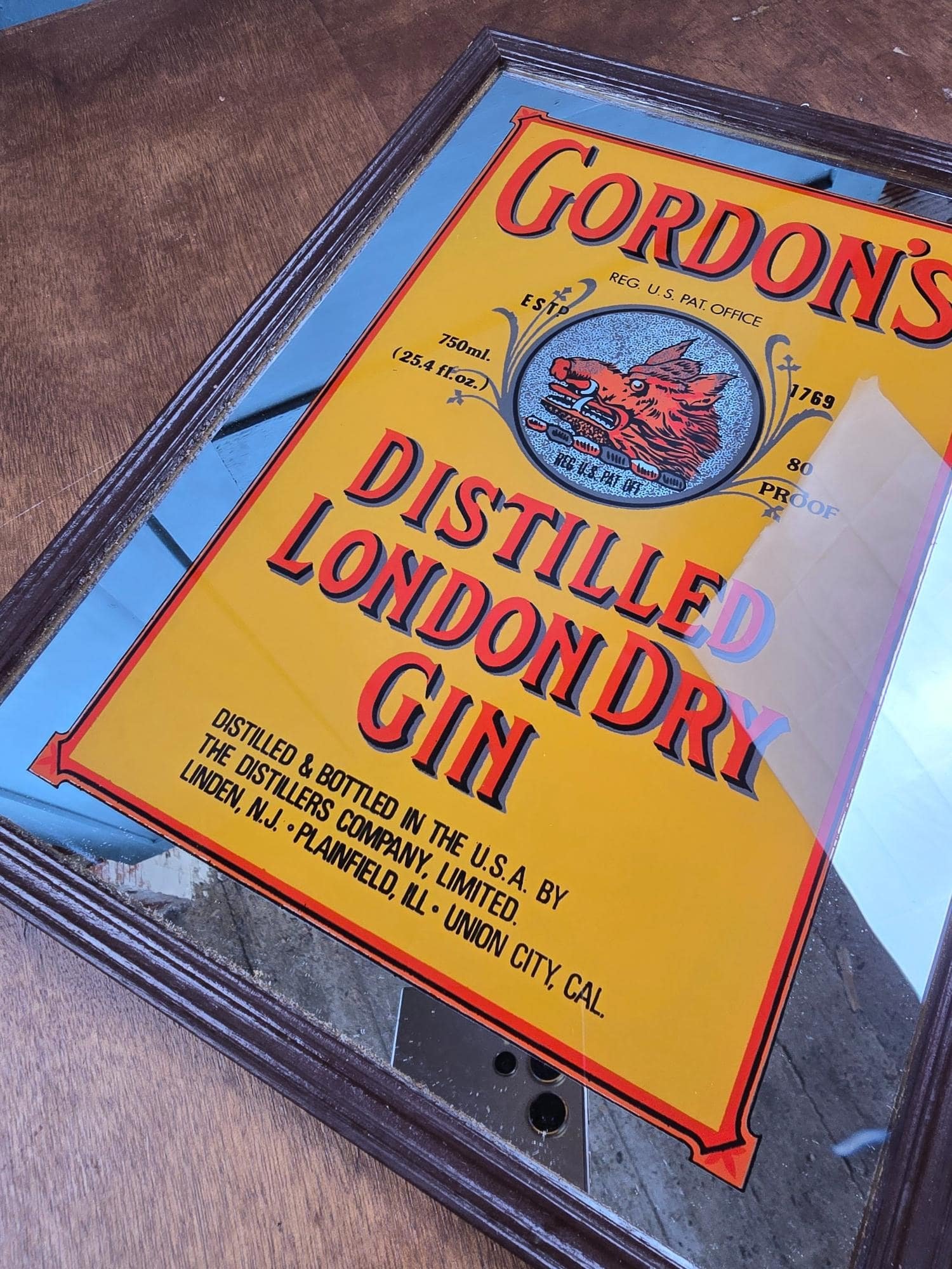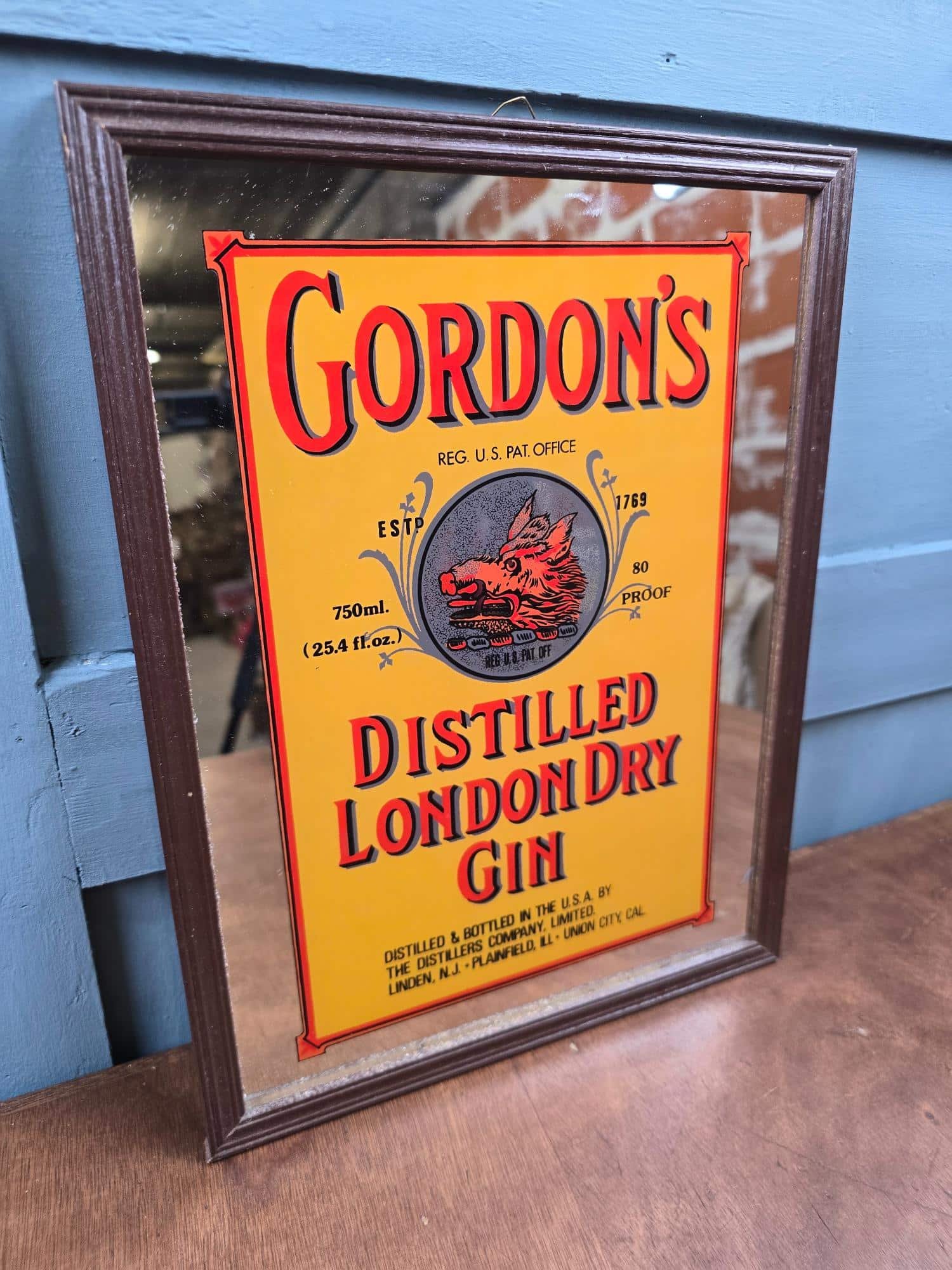 Ce miroir publicitaire Gordon’s est un hommage vibrant au célèbre gin britannique.