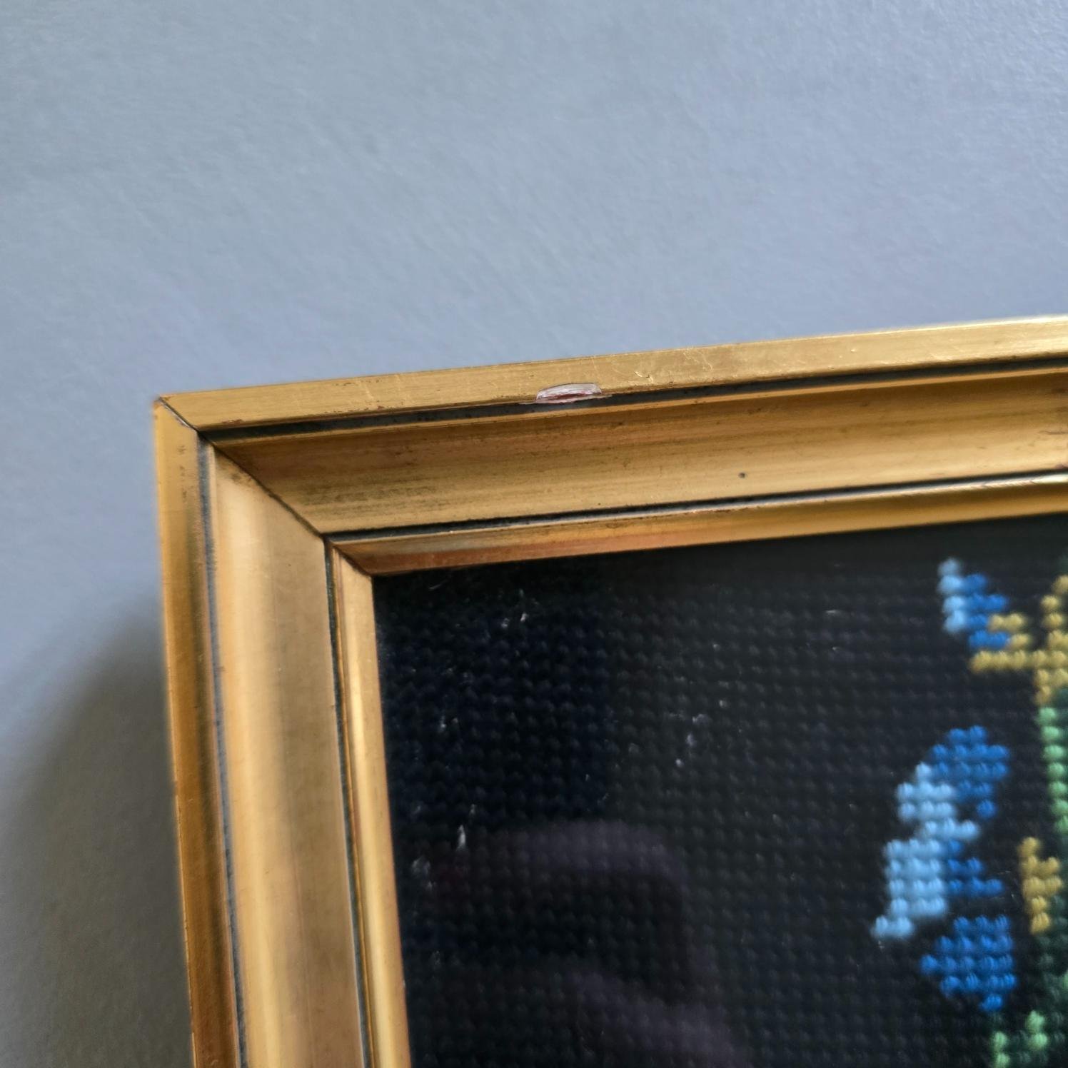🔍 État : Canevas en excellent état, cadre avec traces légères du temps, un petit manque à noter sur le cadre