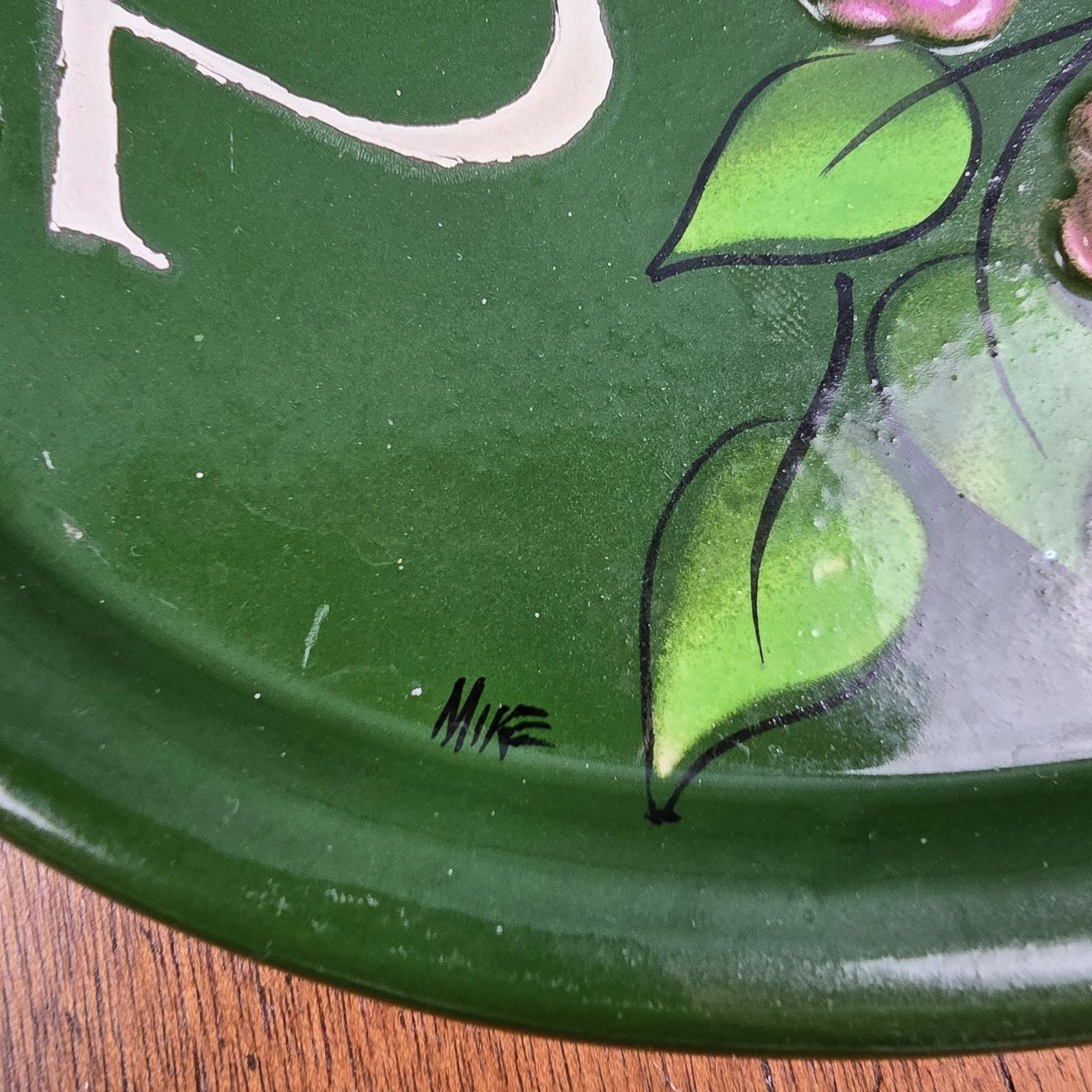 Signée “Mike” dans le coin inférieur droit, elle illustre un savoir-faire artisanal délicat et une vraie sensibilité décorative.