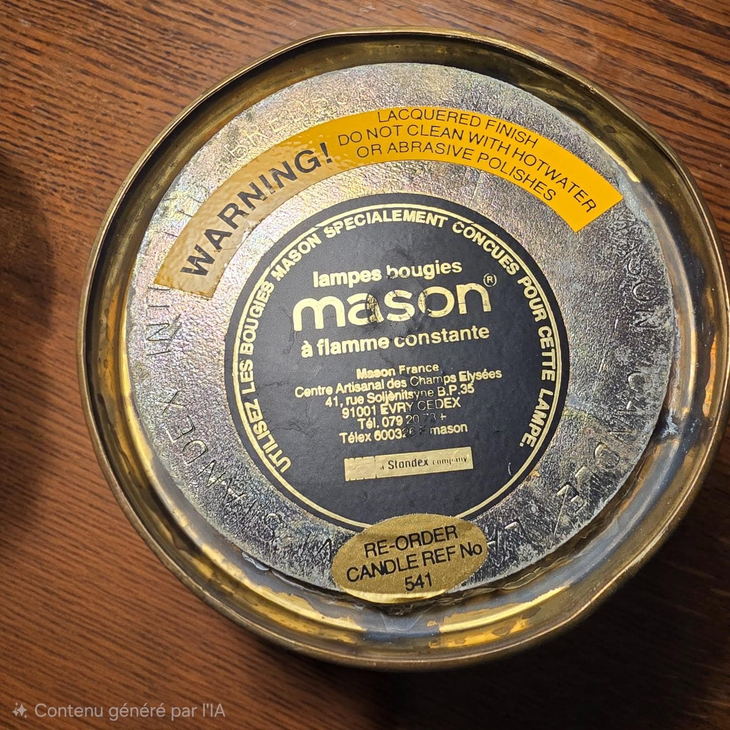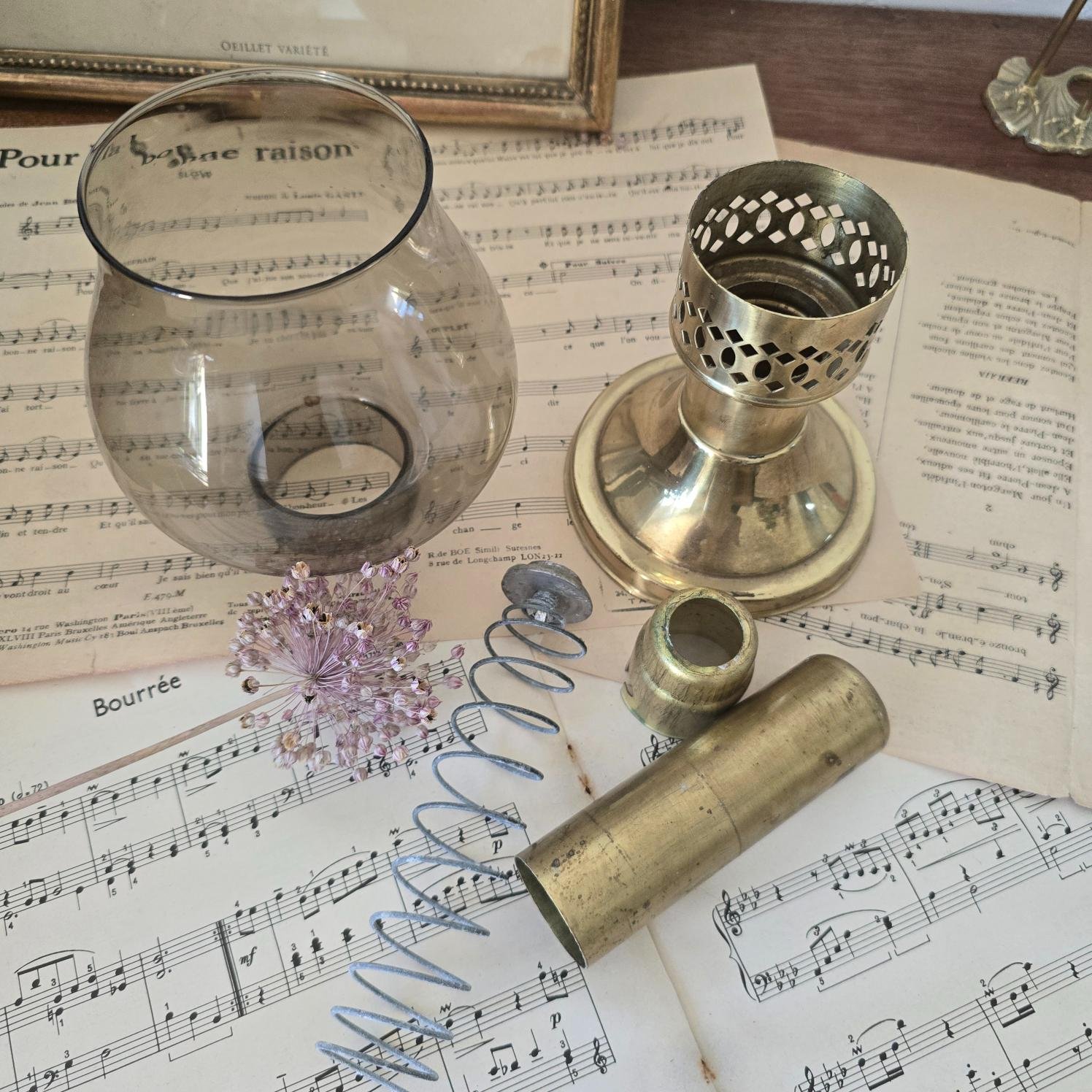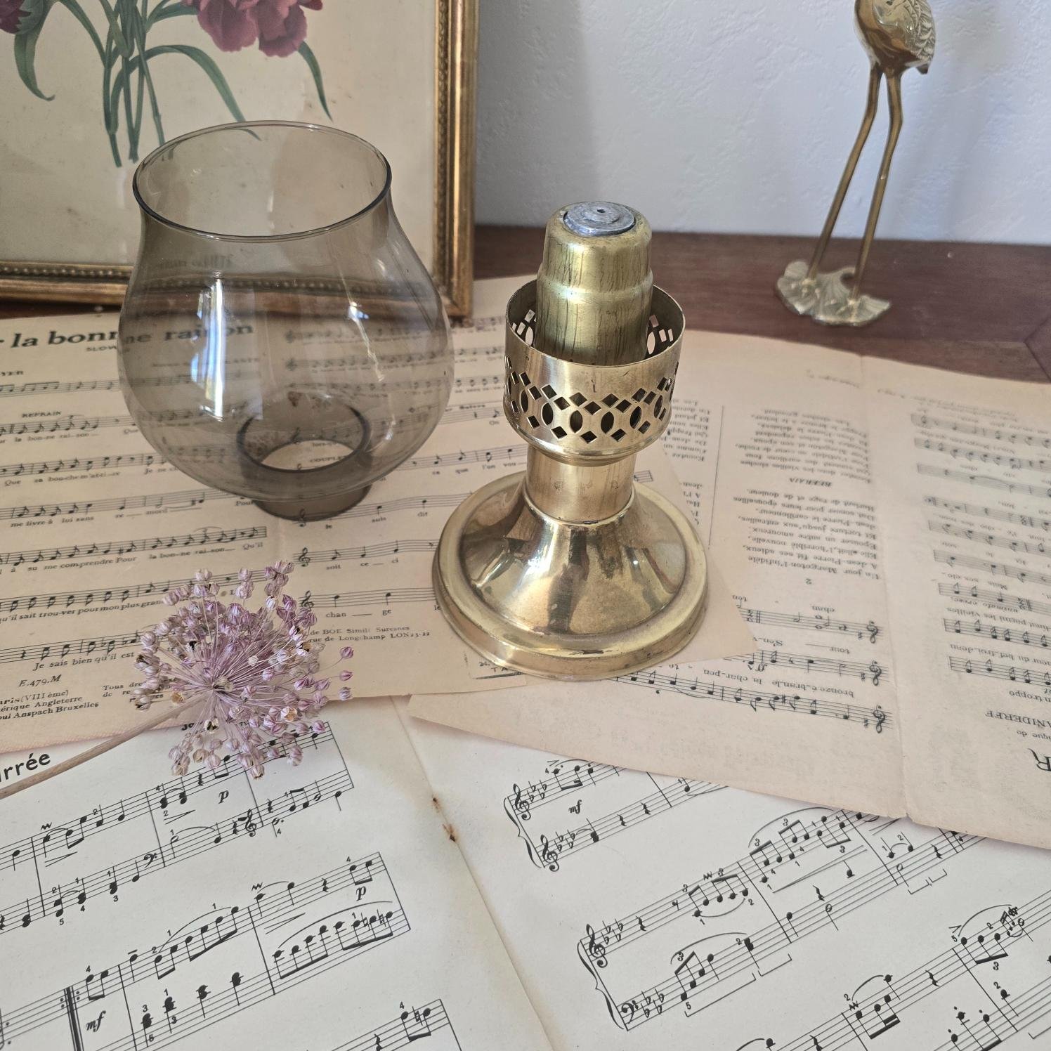 Lampe bougie Mason à flamme constante – laiton & verre fumé – design 1970 – France