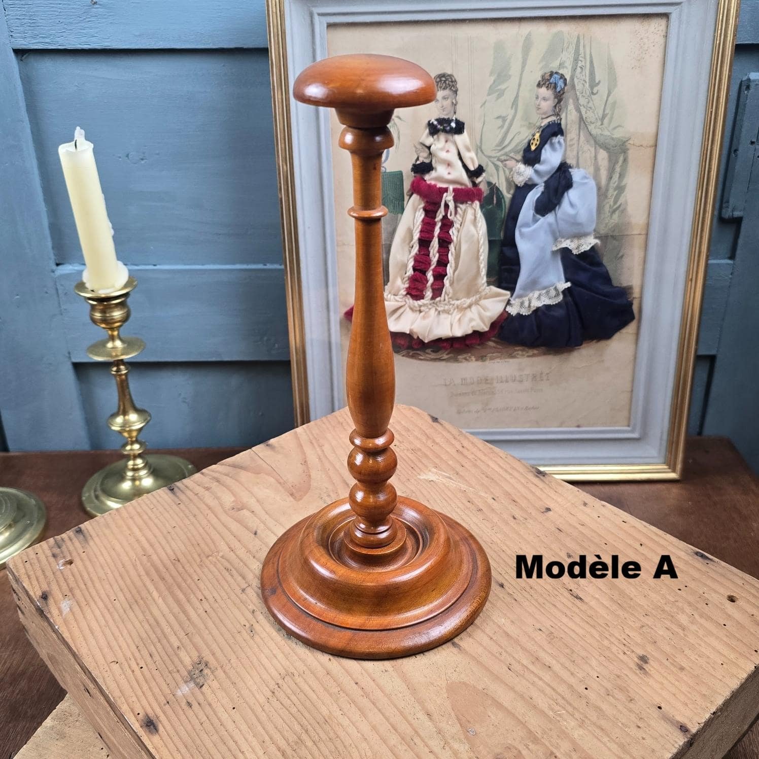 Leur silhouette élancée, la douceur du bois et leur allure d’atelier de modiste apporteront une touche authentique à votre décoration. Parfaits pour exposer chapeaux, bibis, créations textiles… ou simplement pour ajouter une note vintage à une coiffeuse ou une commode.