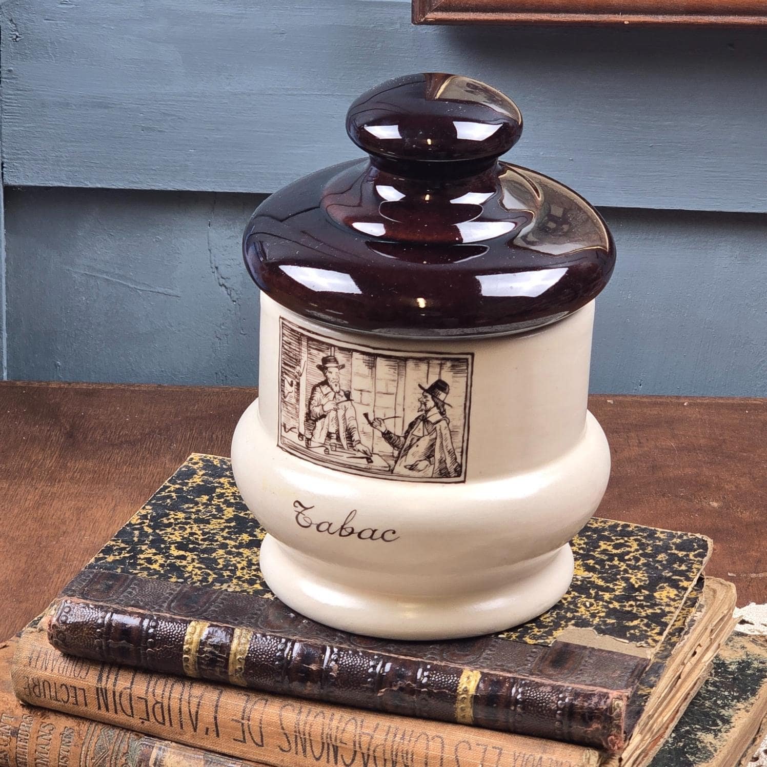 Autrefois compagnon des fumeurs élégants, ce type de pot à tabac était souvent posé sur une table de bistrot ou un comptoir d’épicerie.