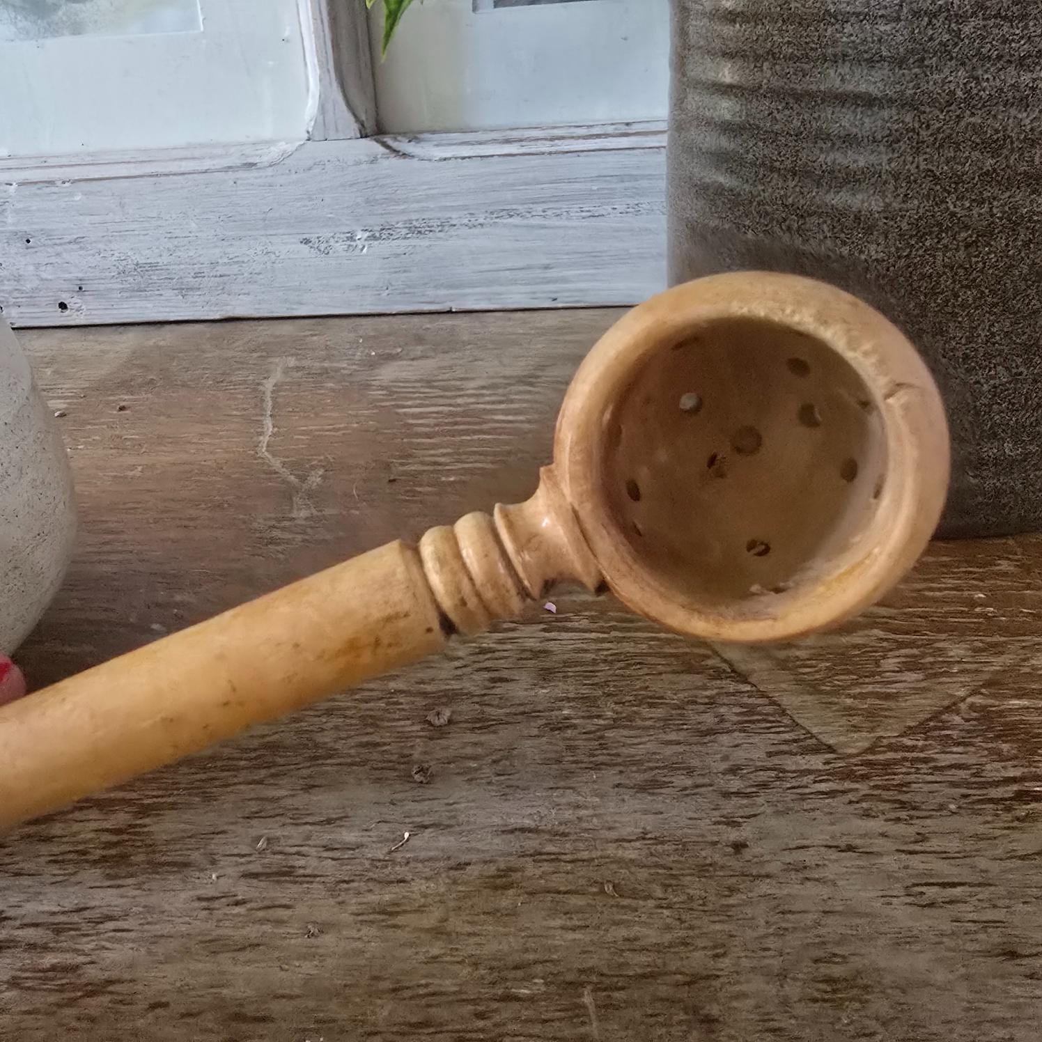 Pot à olives en grès, avec sa cuillère en bois perforée
