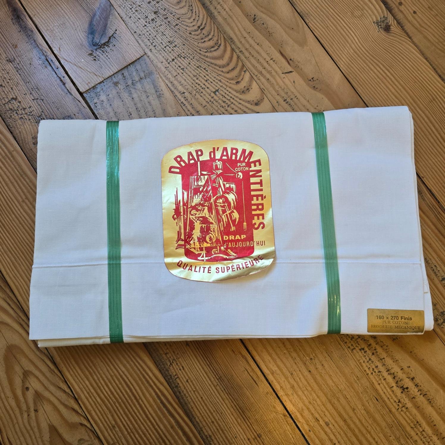 Drap d’Armentières ancien pur coton 160 x 270 cm – neuf sous emballage