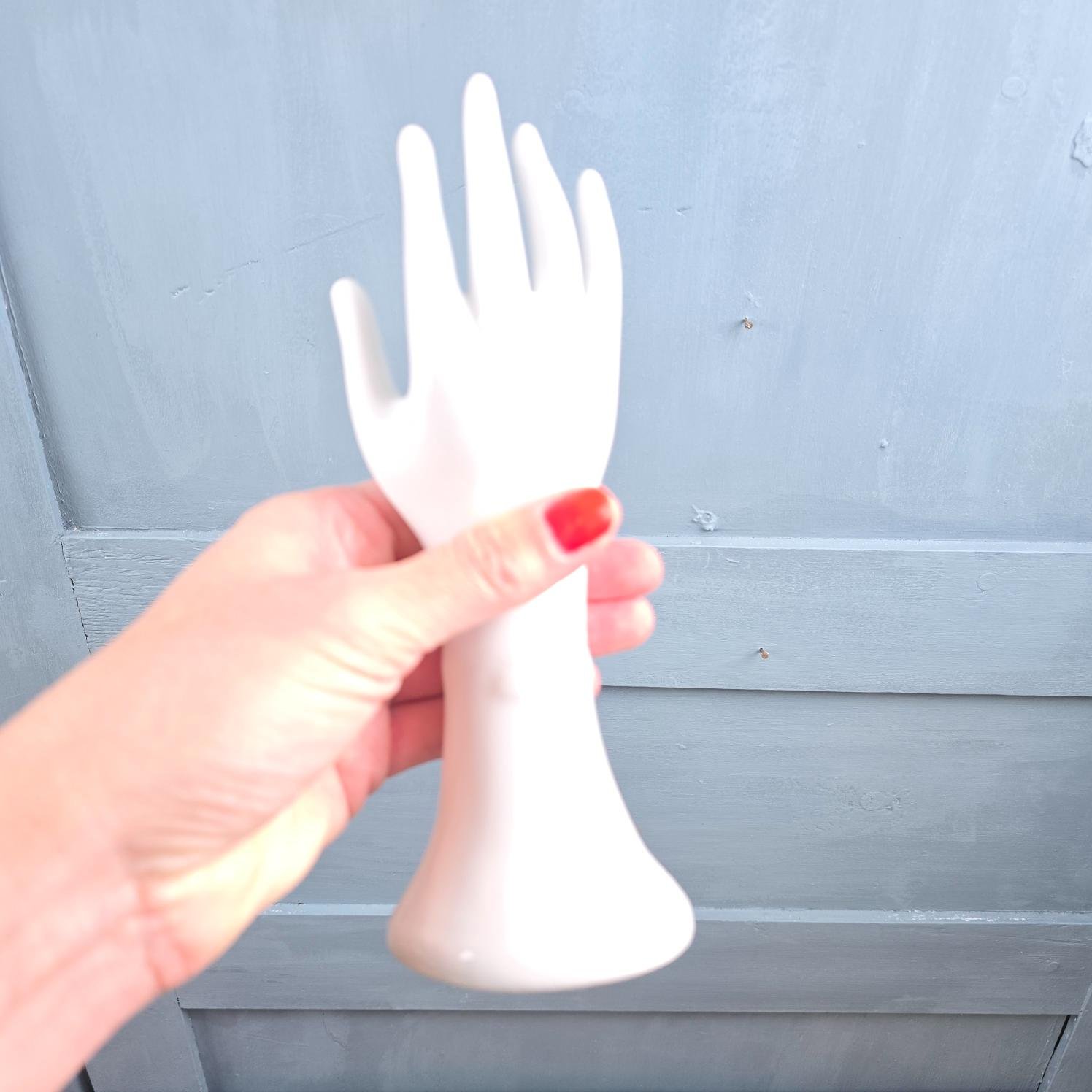 Sa silhouette blanche, fine et lumineuse, rappelle les vitrines d’atelier des années 60-70, quand les mains-mannequins servaient autant aux créateurs qu’aux bijoutiers.