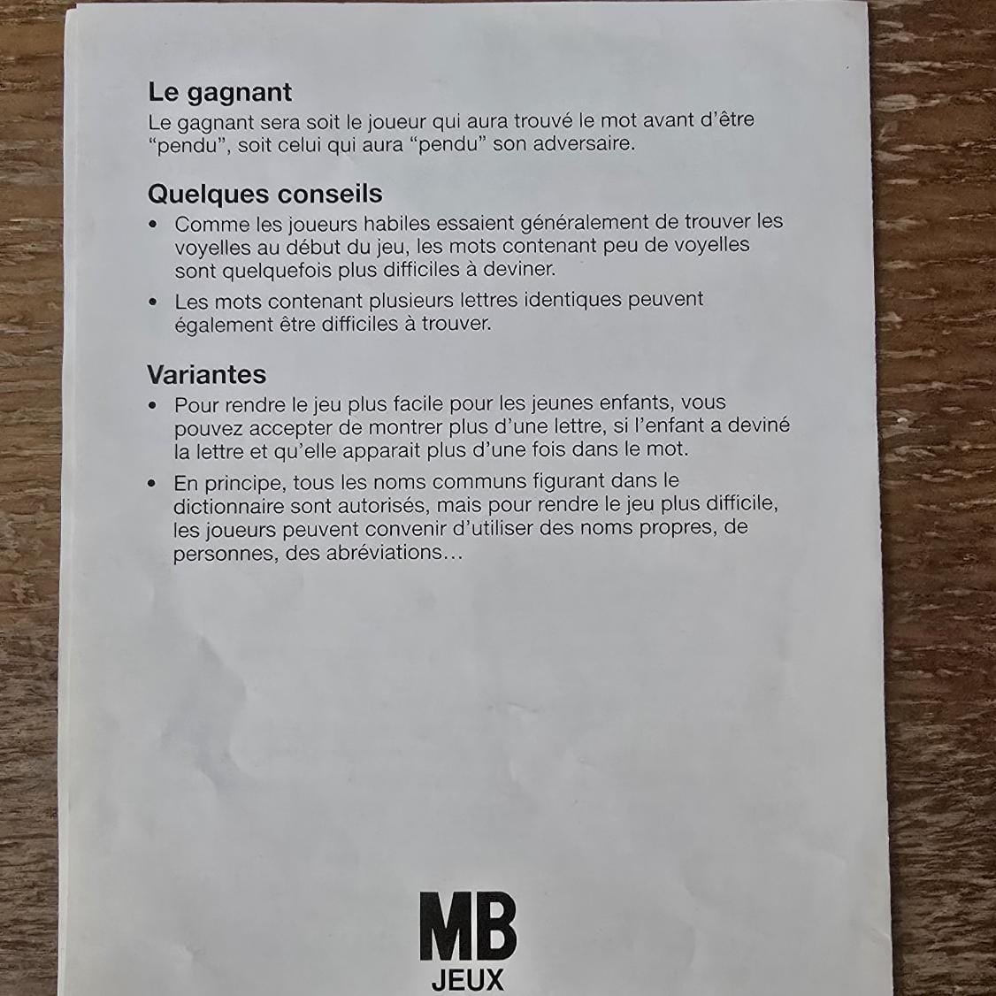 Redécouvrez le plaisir simple et intemporel du jeu du Pendu, édité par MB Jeux en 1994.