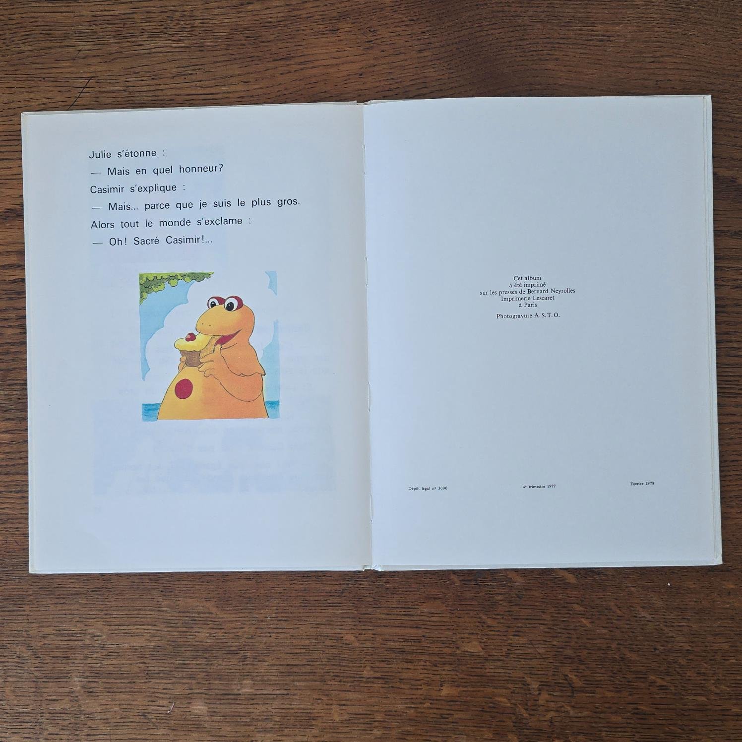 Publié en 1978 aux Éditions M.C.L. et illustré par Anny Le Pollotec, cet album grand format met en scène Casimir et ses amis dans une histoire tendre et pleine de fantaisie. Imprimé en France.