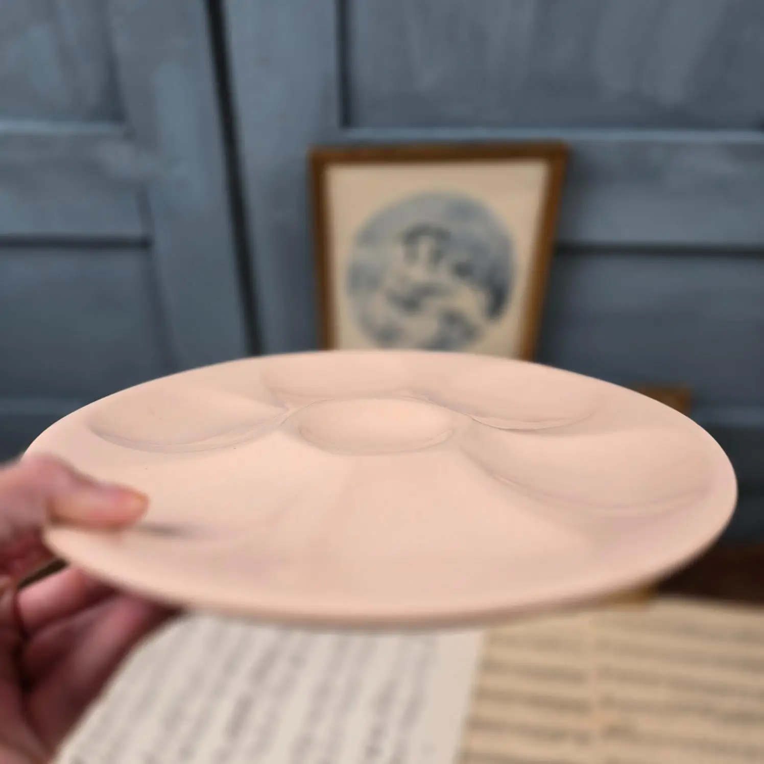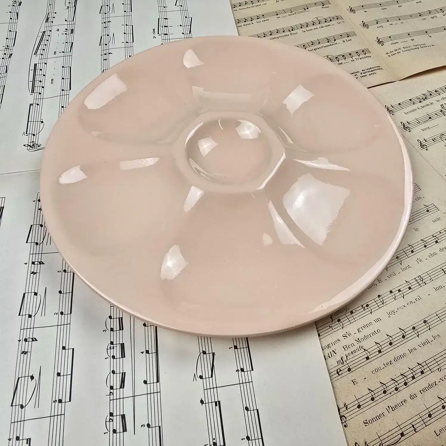 Lot de 6 assiettes à huîtres vintage rose poudré, Digoin & Sarreguemines