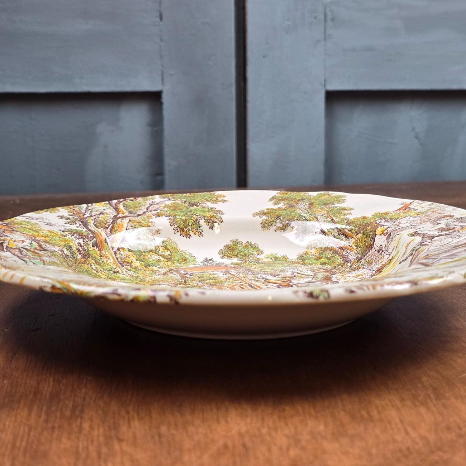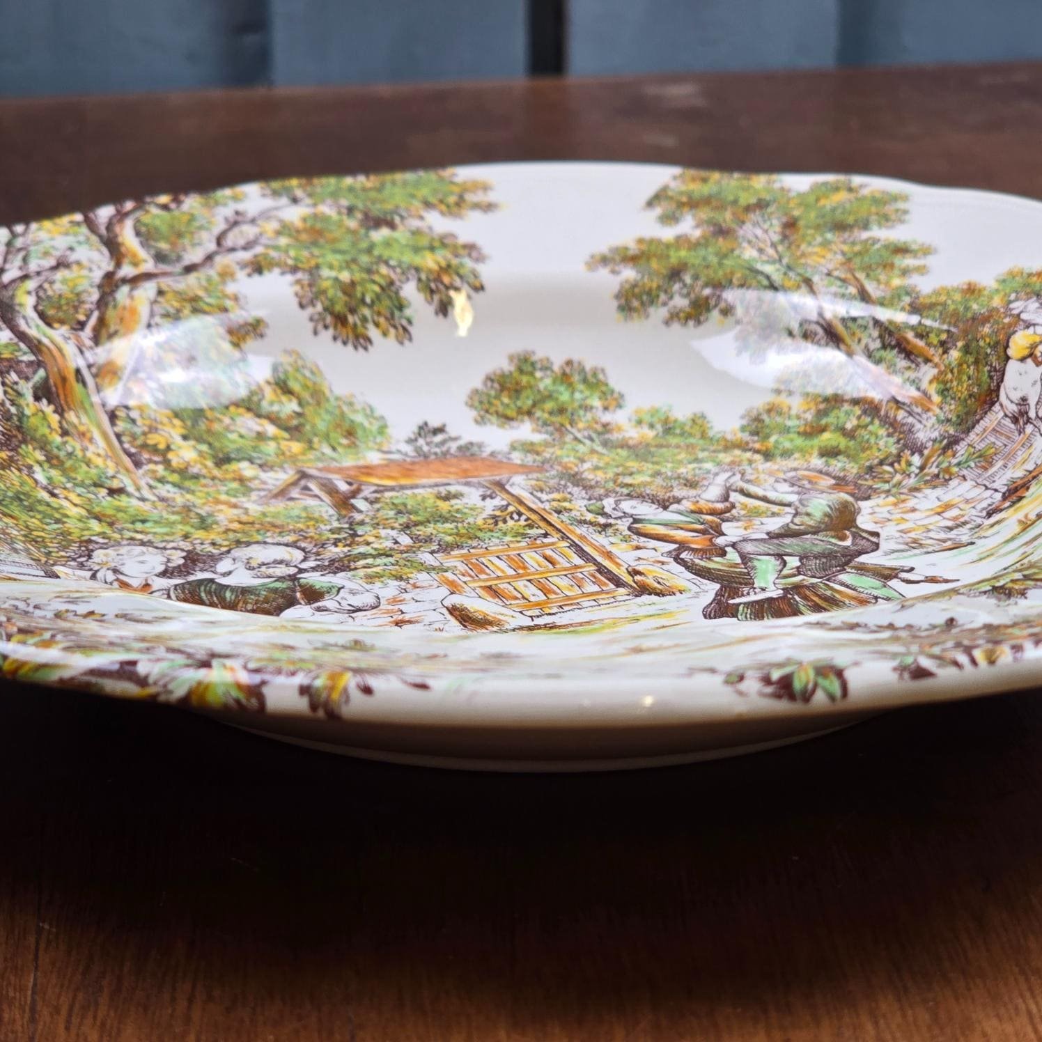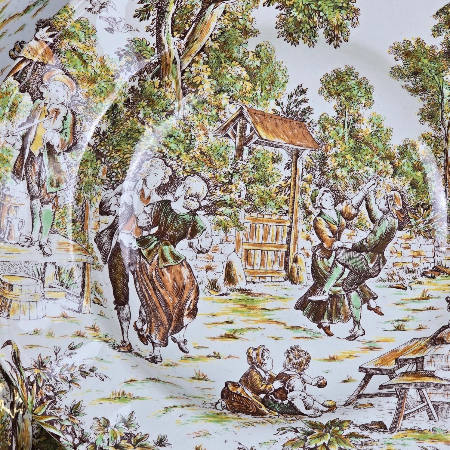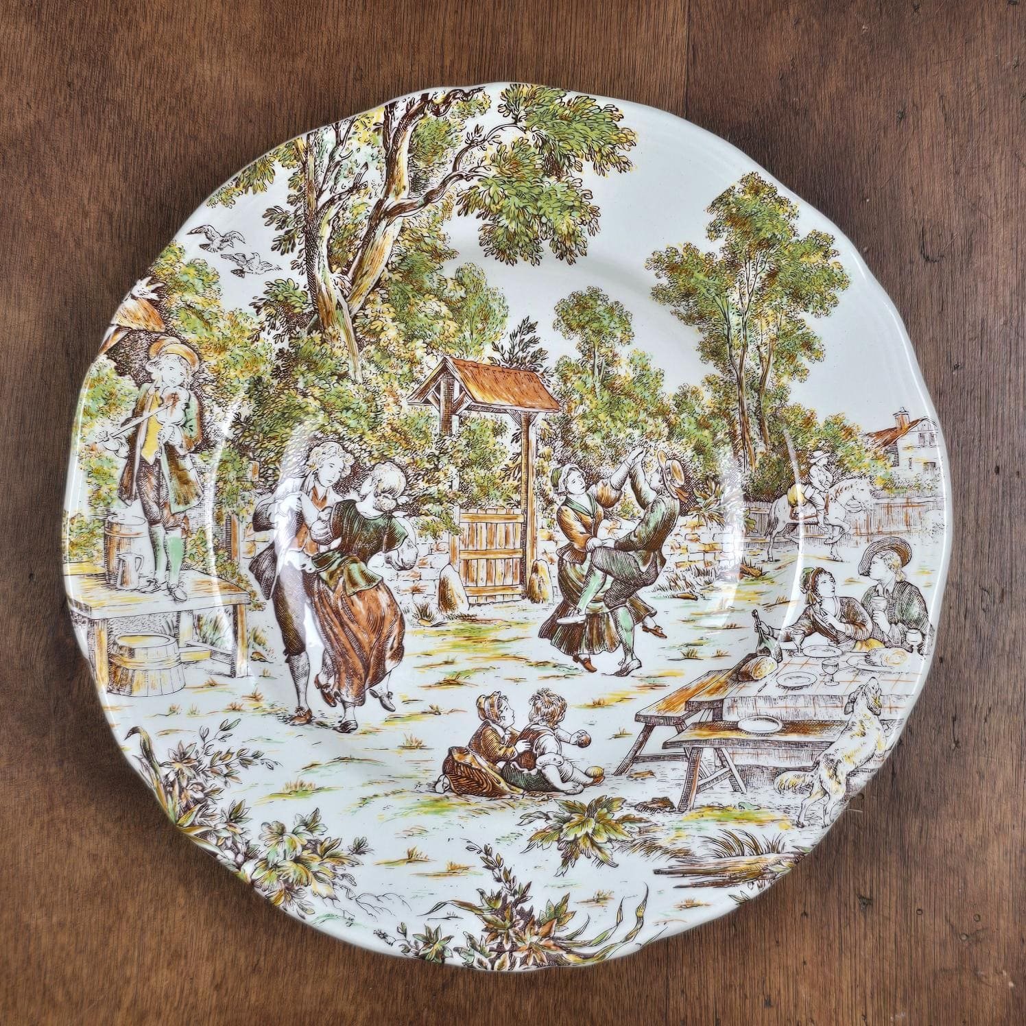Le décor est riche, narratif et chaleureux, typique de l’esthétique Lunéville inspirée des scènes champêtres anciennes.