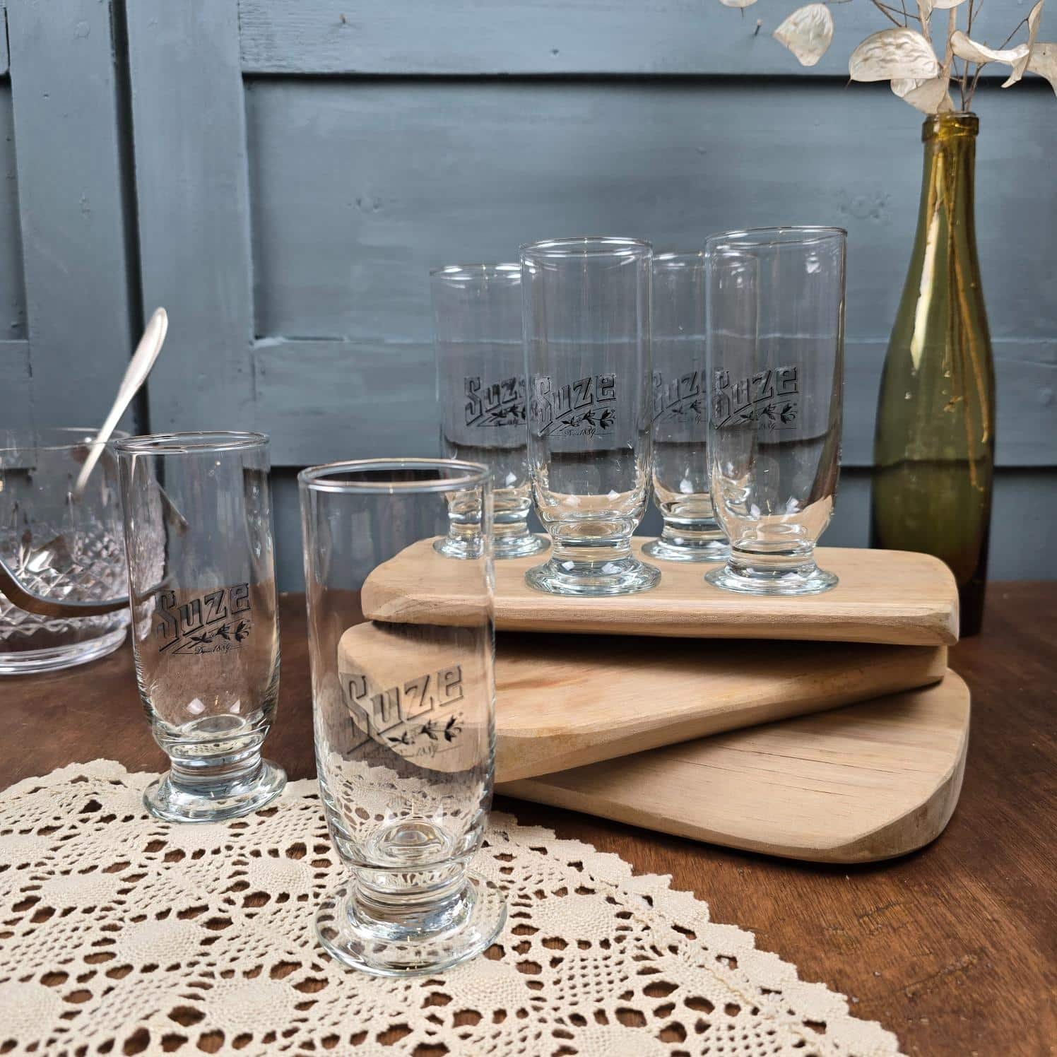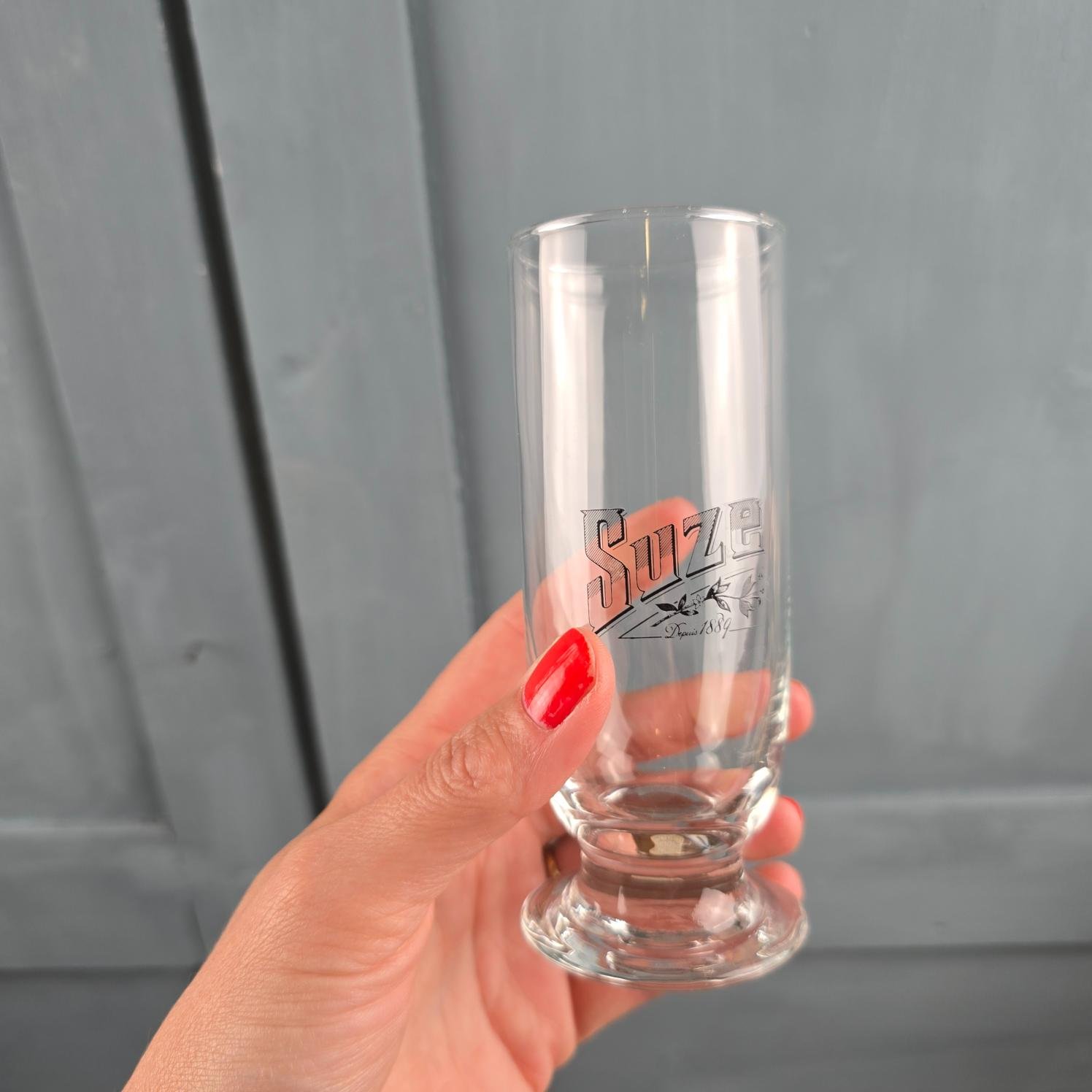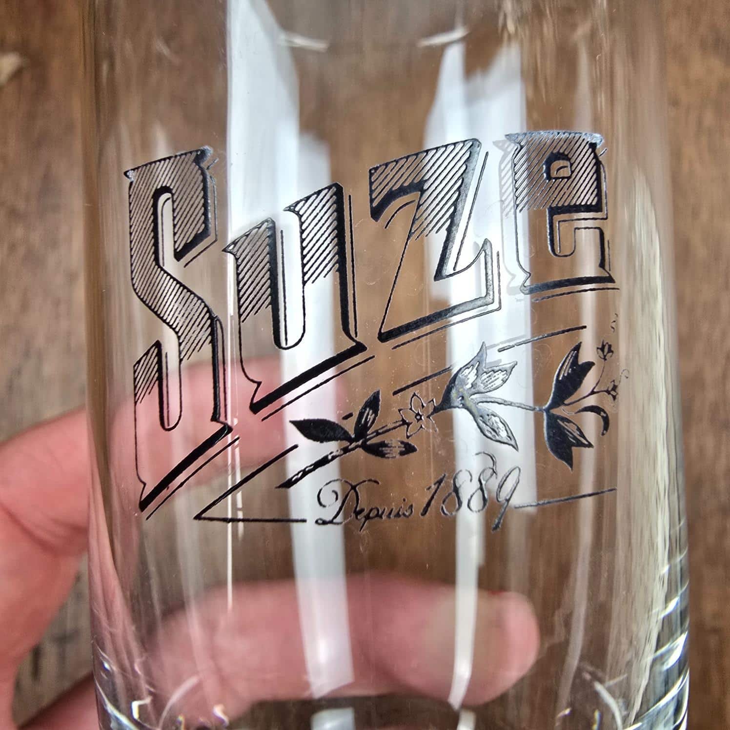 Le verre, totalement transparent, met en valeur la boisson et capte la lumière avec finesse. Le marquage Suze, délicat et authentique, apporte cette touche vintage recherchée, sans jamais surcharger l’ensemble.