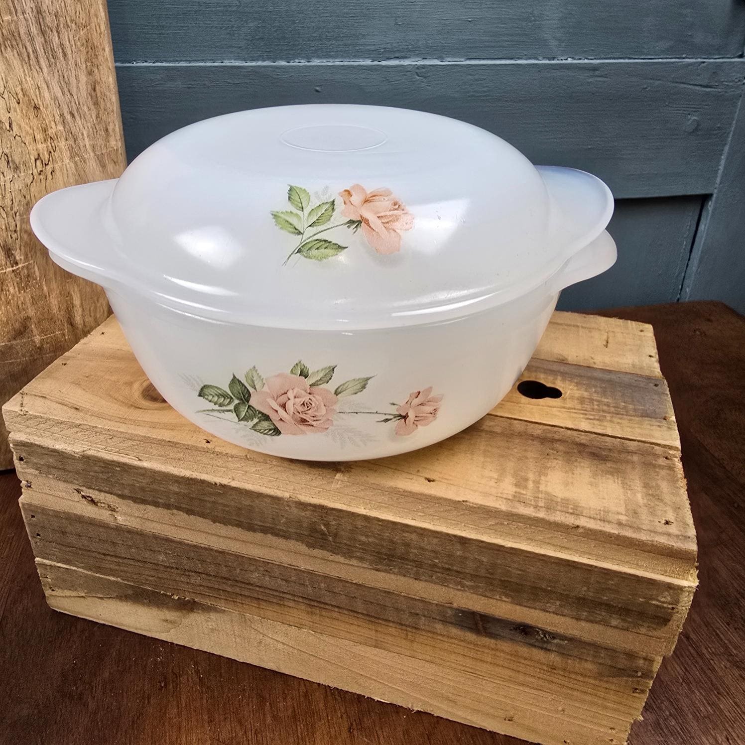 Lot Arcopal Rose – mini cocotte + beurrier + 2 ramequins – Années 70