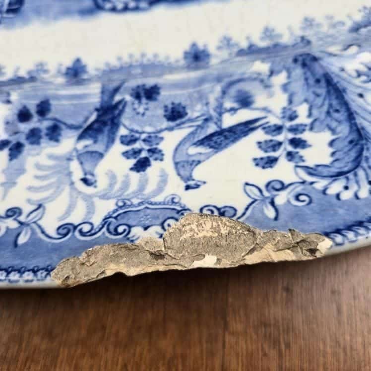 🔍 État : Une grosse ébréchure sur le bord + traces du temps (craquelures fines, patine)