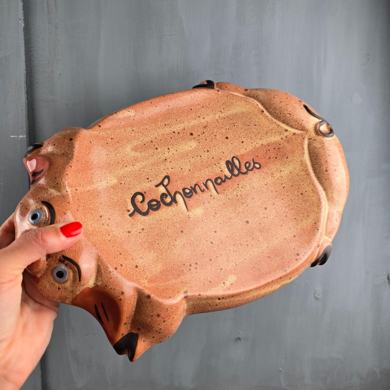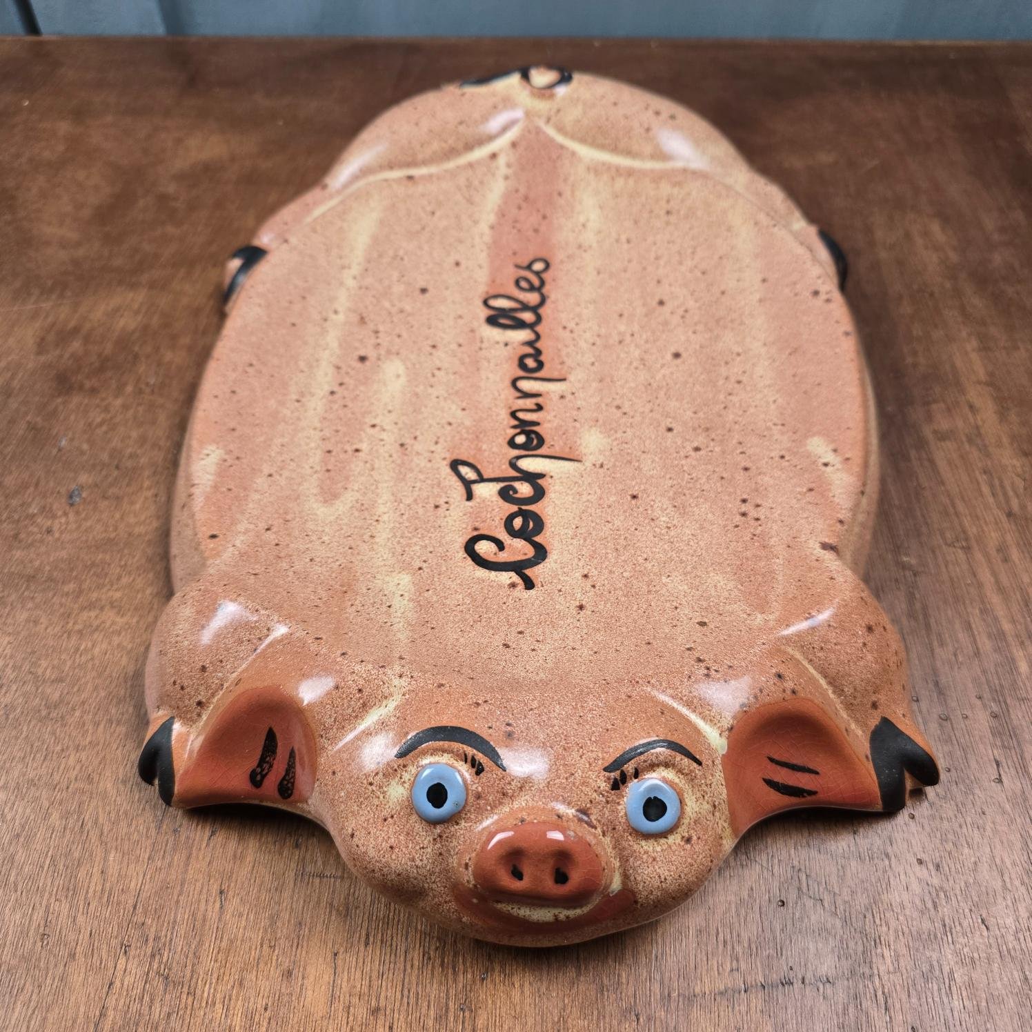 Plat vintage en céramique – “Cochonailles” – Forme cochon