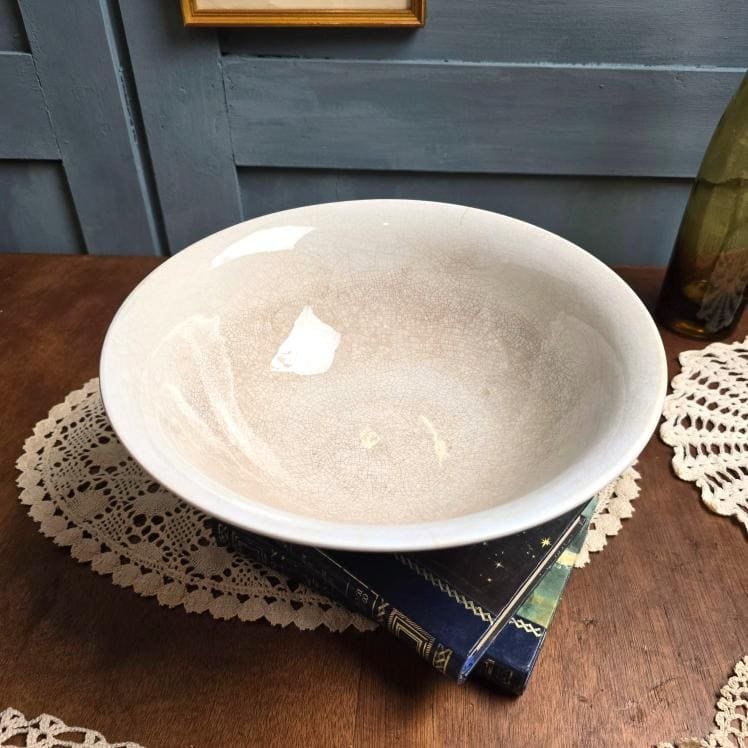 Les fines fêlures sur le bord témoignent de son vécu et participent à son charme authentique. Une pièce pleine de poésie, idéale en centre de table, pour accueillir des fruits, ou simplement sublimer une décoration intérieure.