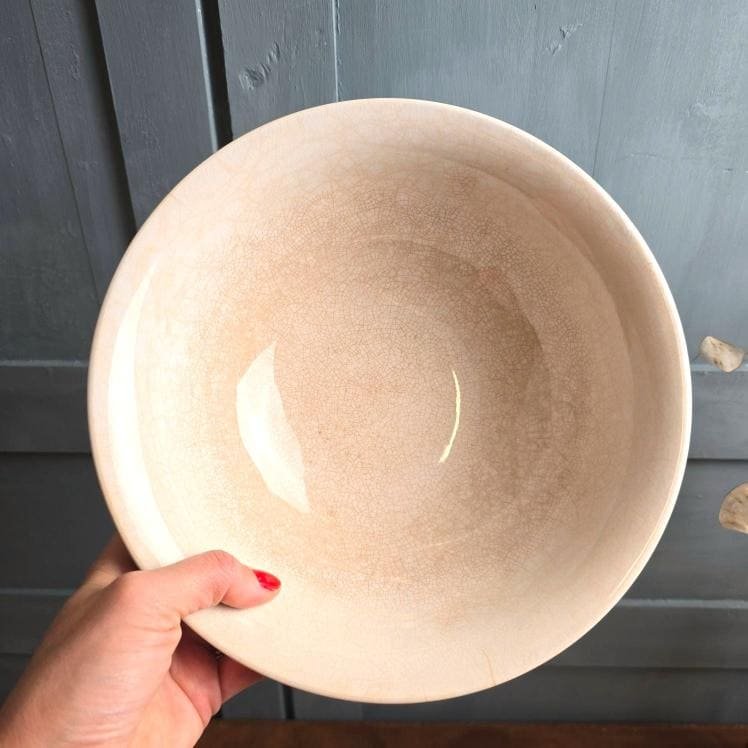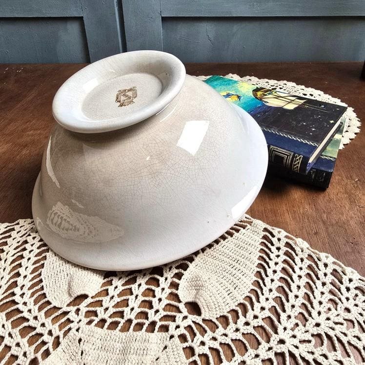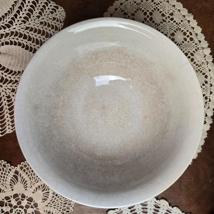 Ancien saladier estampillé Sarreguemines, modèle « China », en terre de fer à la douce teinte ivoire.