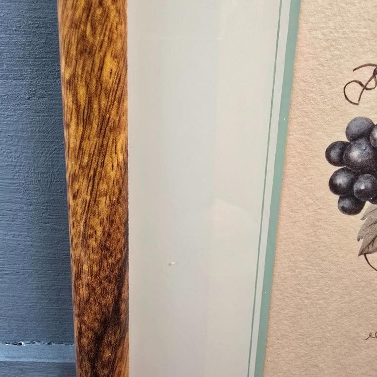 🏷️ Matériaux : Illustration mise en valeur par un double passe-partout aux tons doux et un cadre imitation loupe de noyer par Créastyl France, années 1990.
