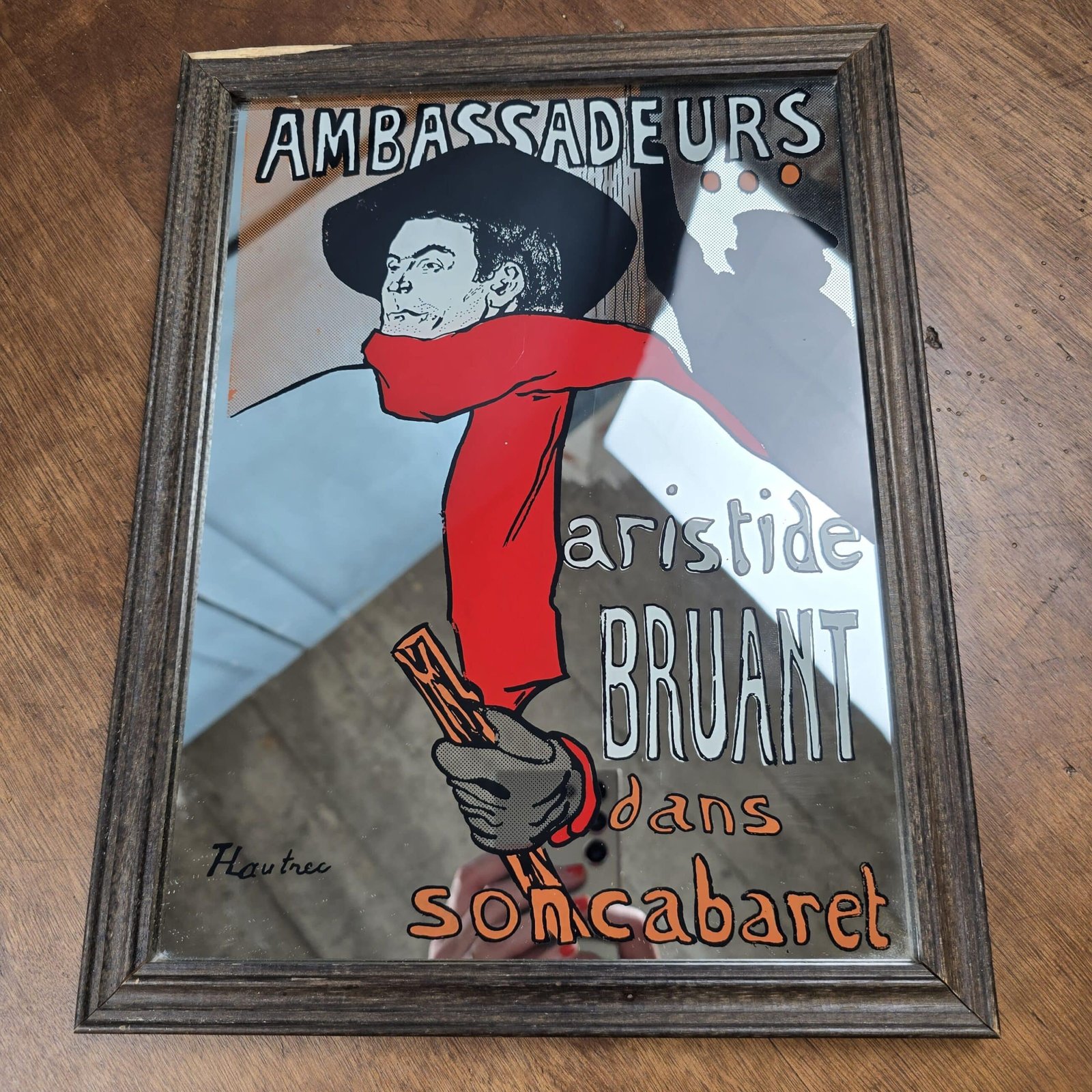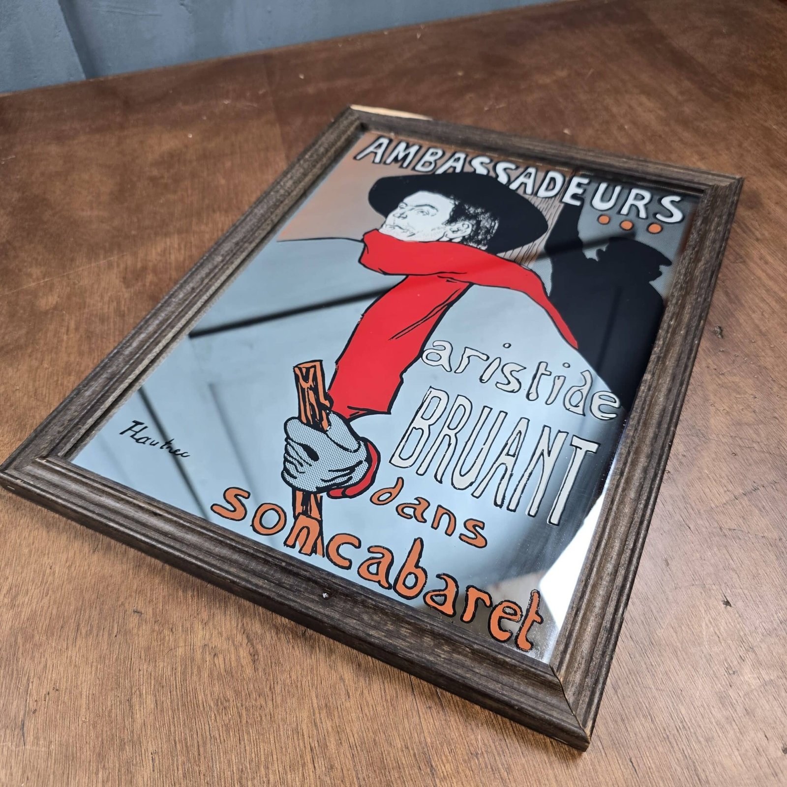 Miroir sérigraphié Aristide Bruant Ambassadeurs d’après Toulouse-Lautrec – années 70