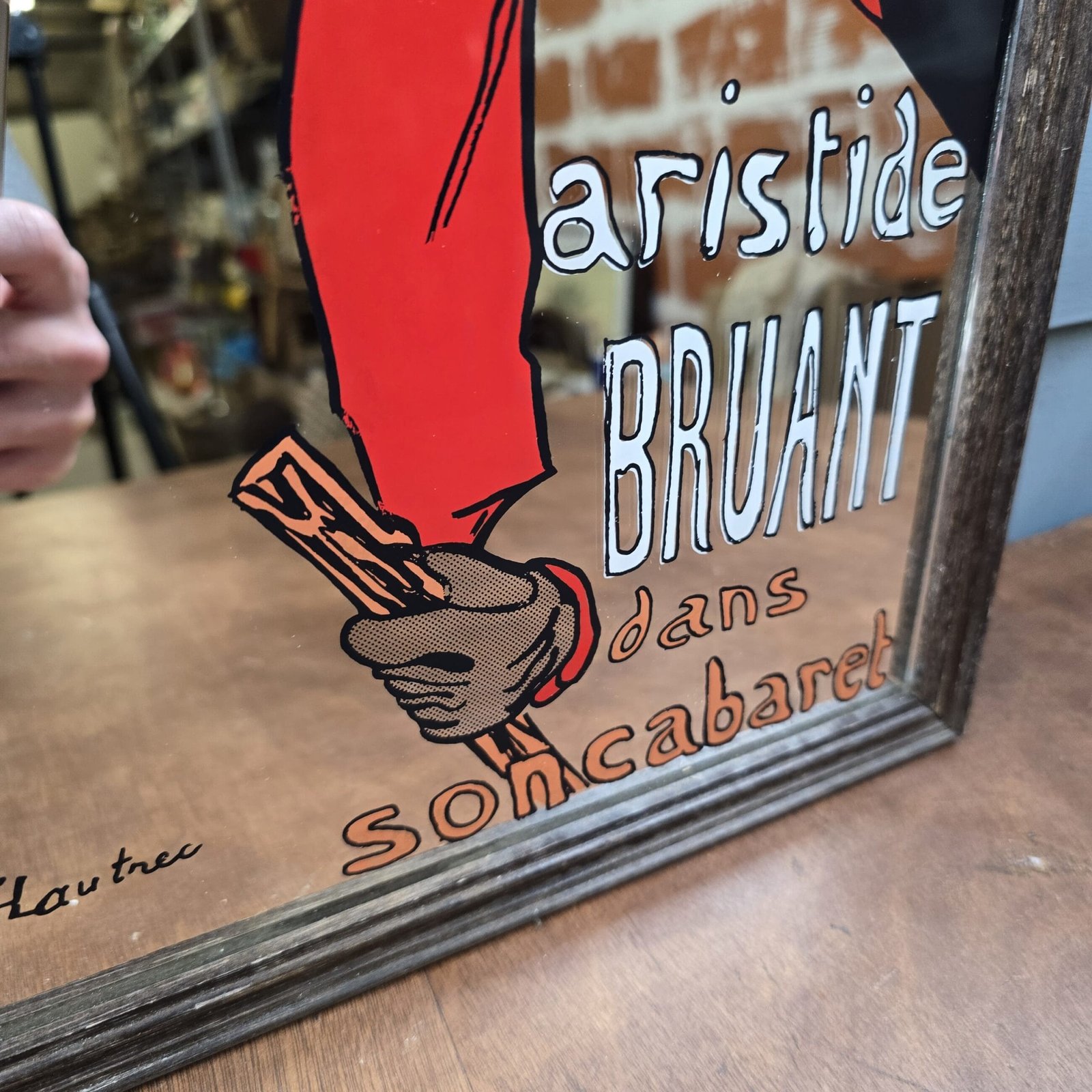 Ce superbe miroir décoratif rend hommage à la mythique affiche de Toulouse-Lautrec représentant Aristide Bruant, figure incontournable du Paris montmartrois.