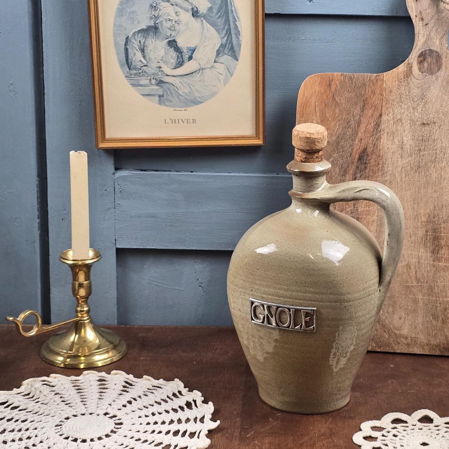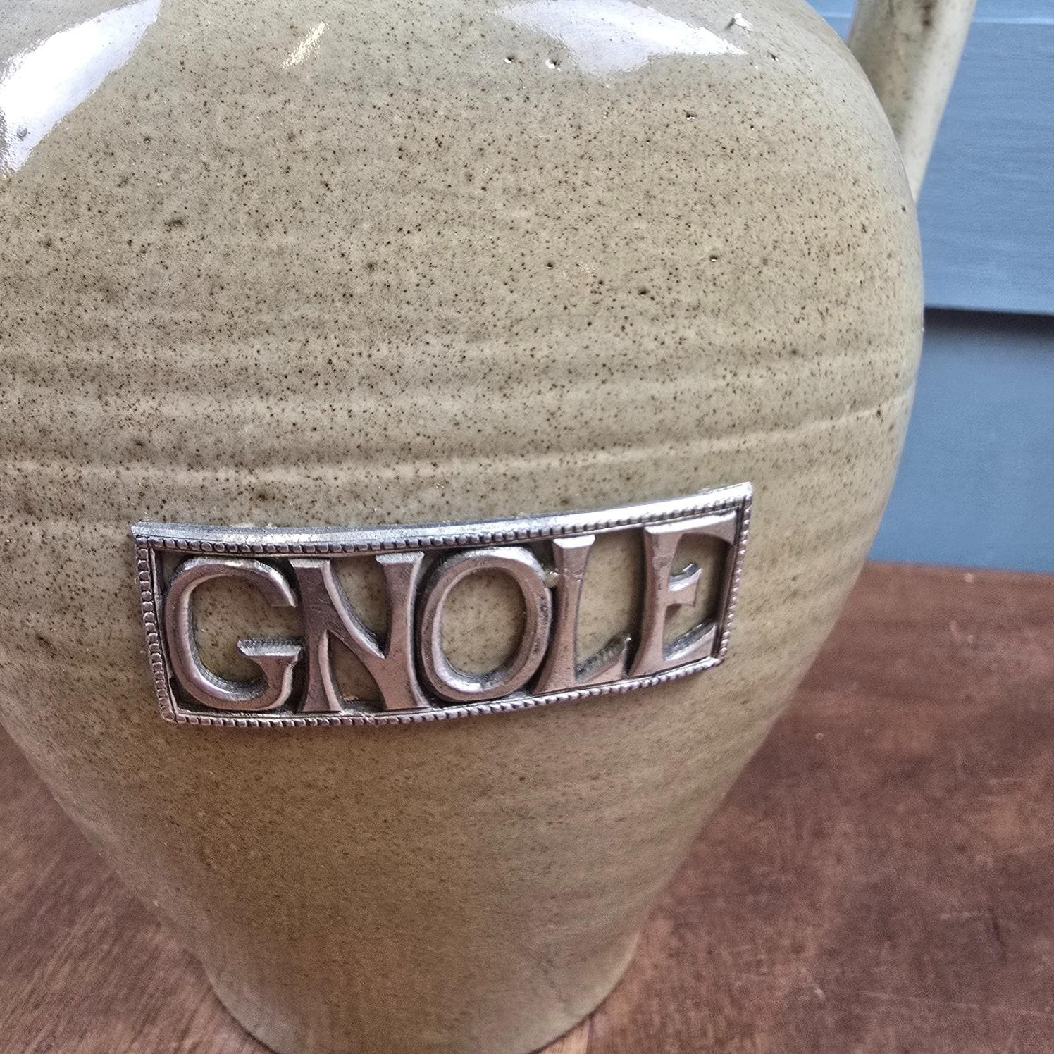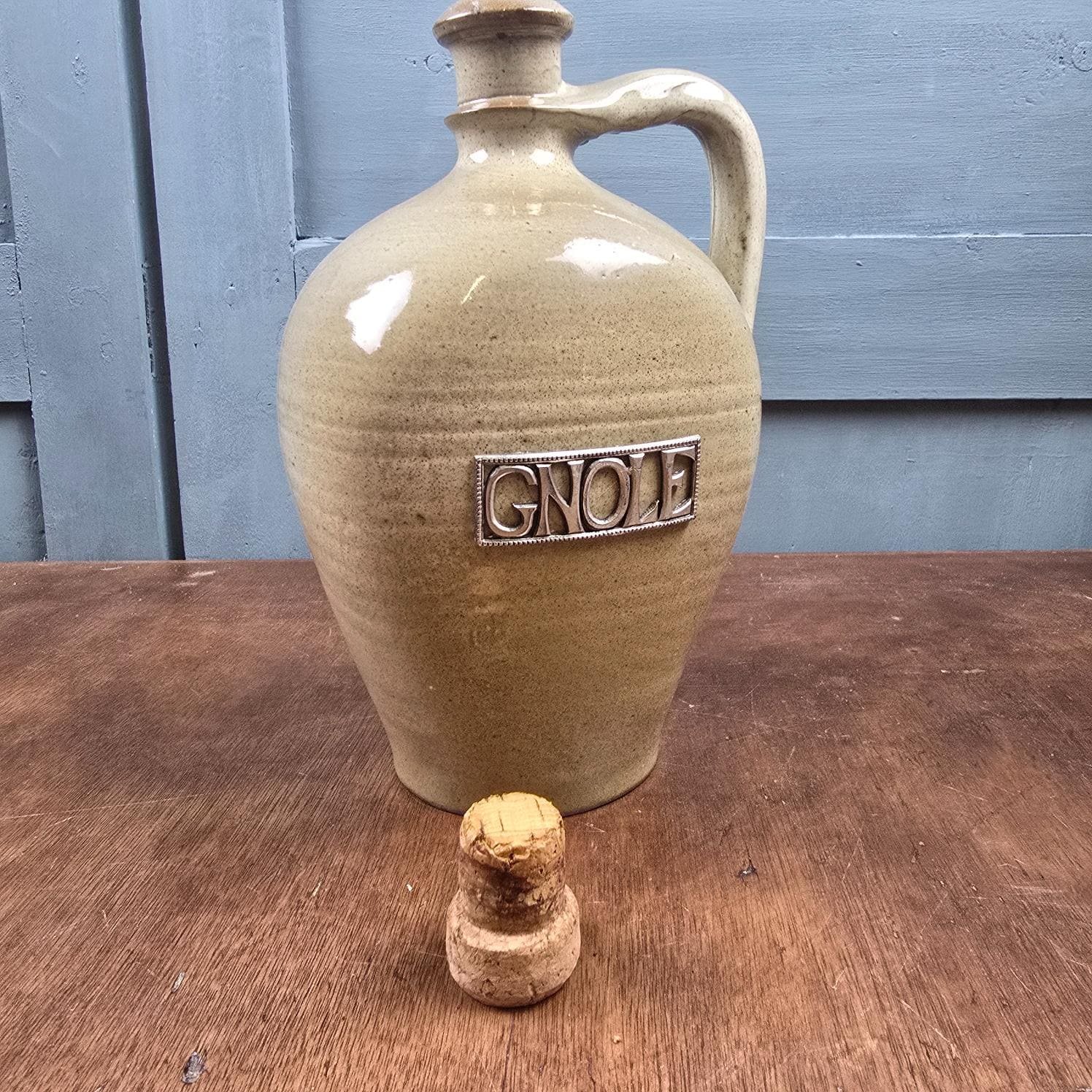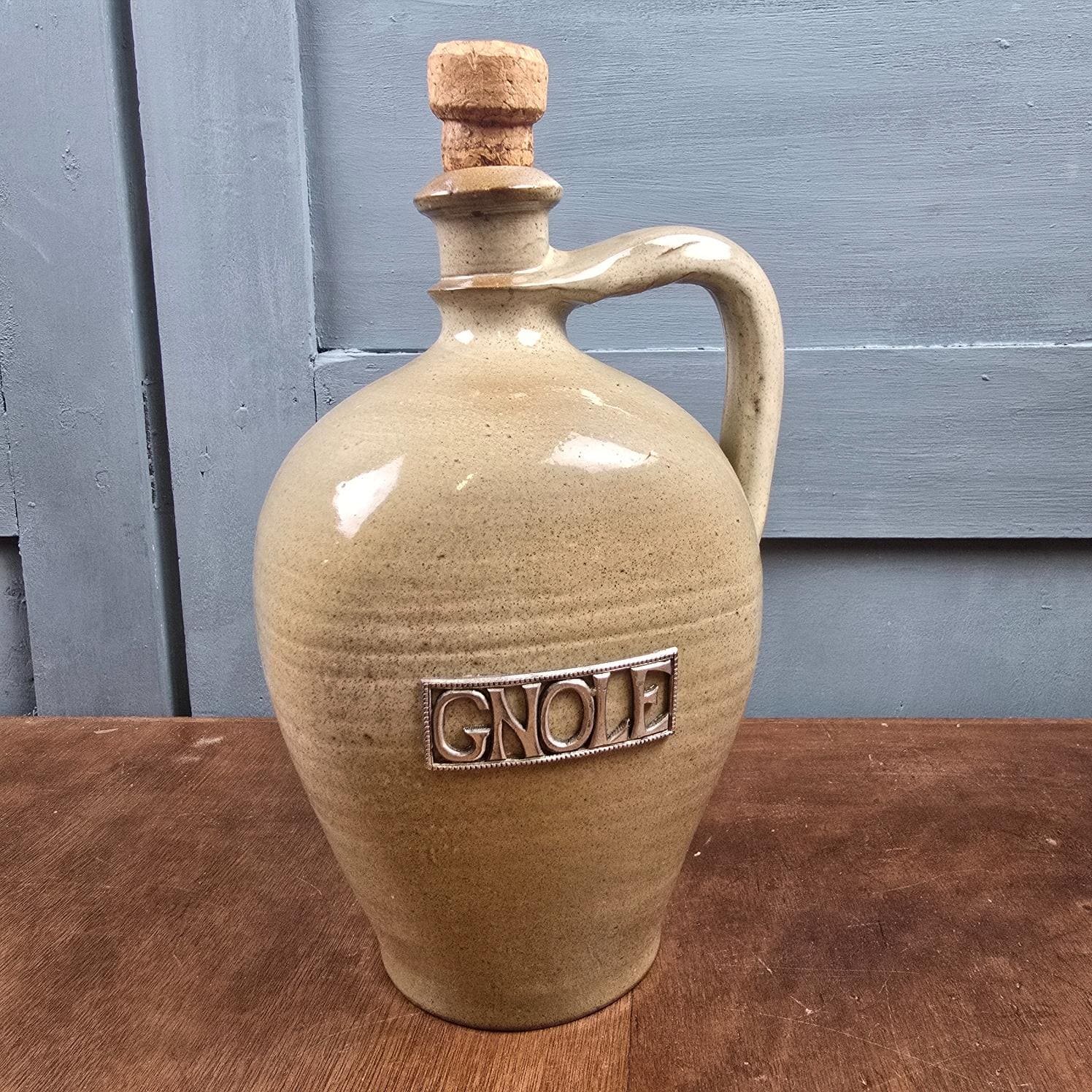 Cette bouteille en grès attire d’abord par sa silhouette douce et équilibrée, puis par ce mot en relief, posé comme une évidence : Gnole.