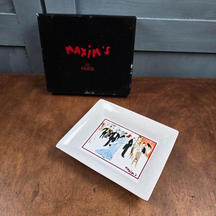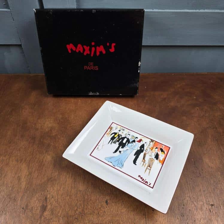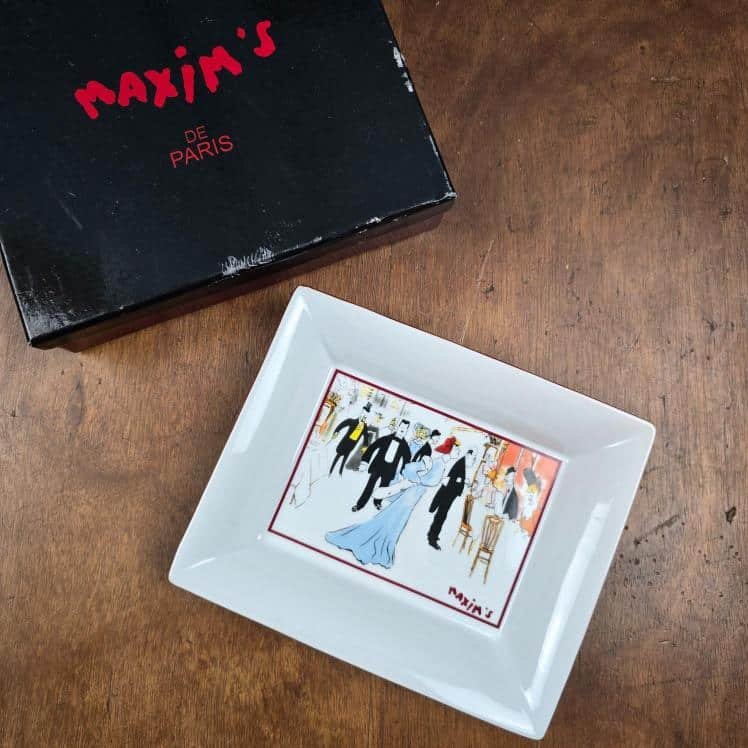 Plateau vide-poche Maxim’s Paris, Porcelaine illustrée avec boîte d’origine