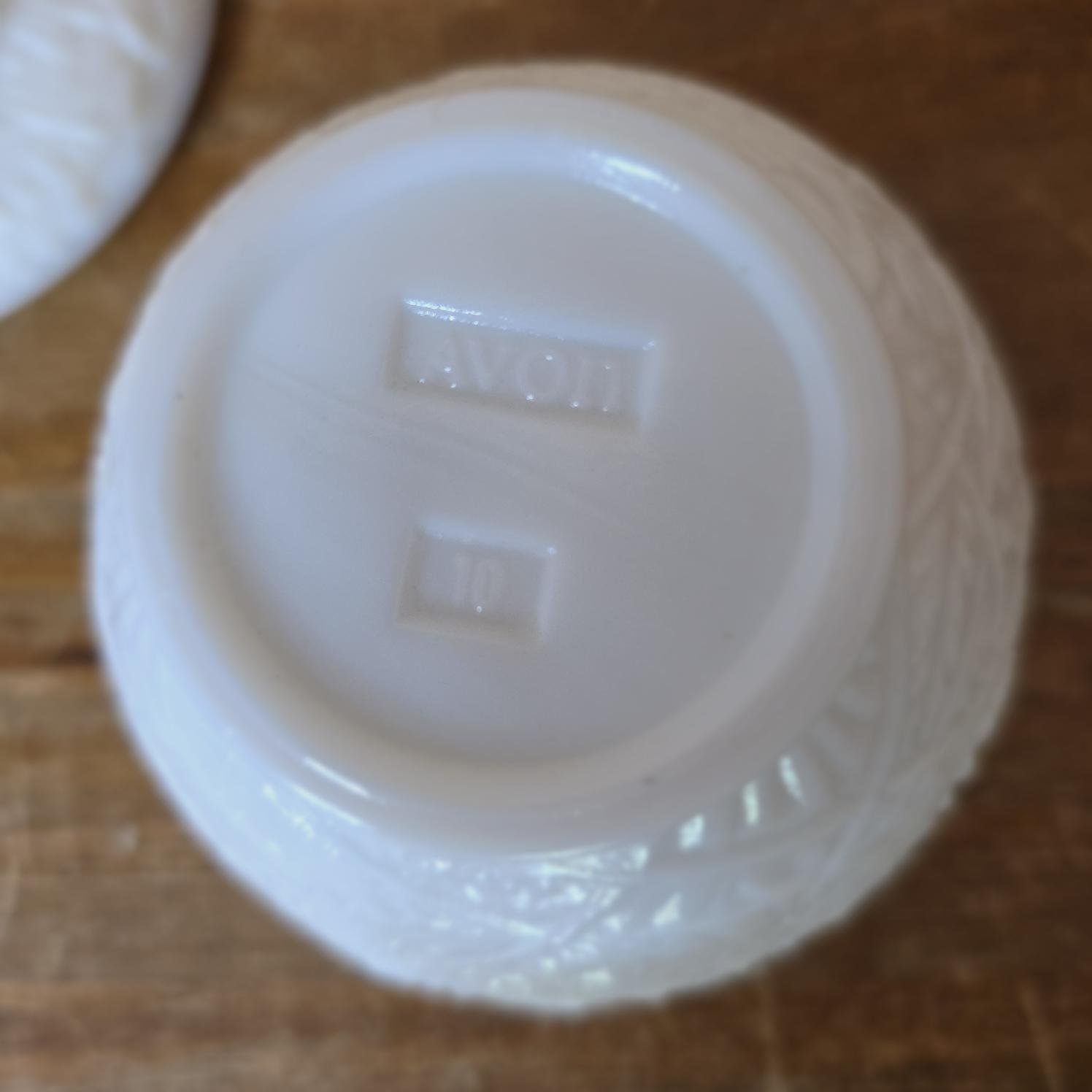Très bon état général, sans éclats ni fêle. L’objet est estampillé « Avon » sous la base avec le numéro « 10 ».