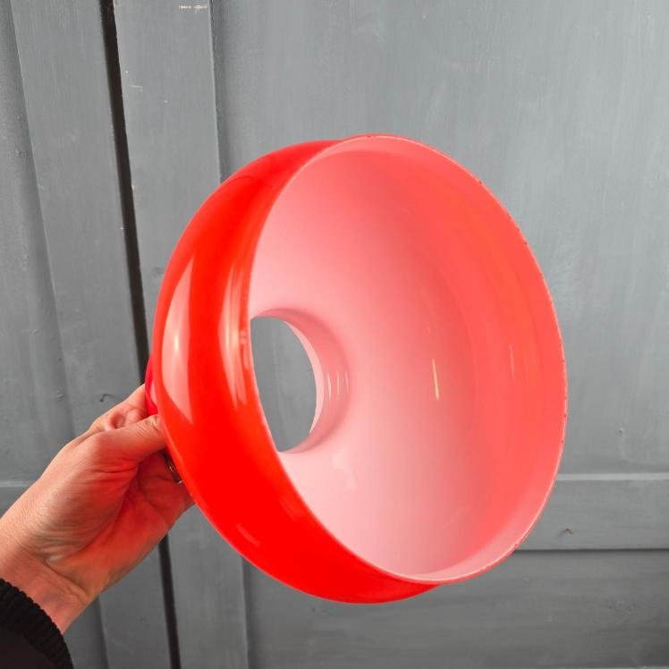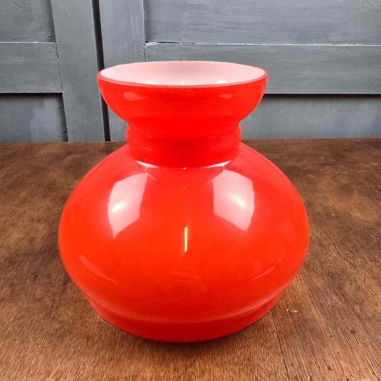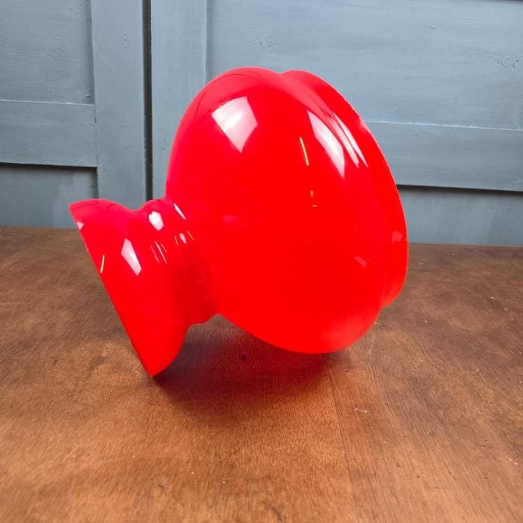 Globe vintage rouge en verre opale – Abat-jour suspension années 70 – Luminaire pop