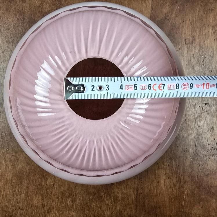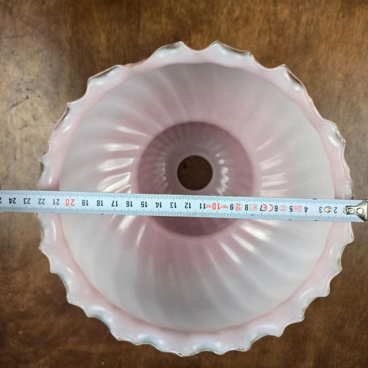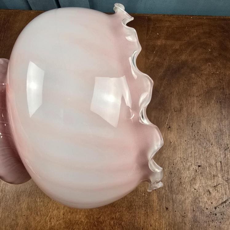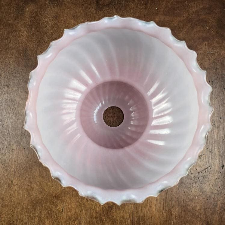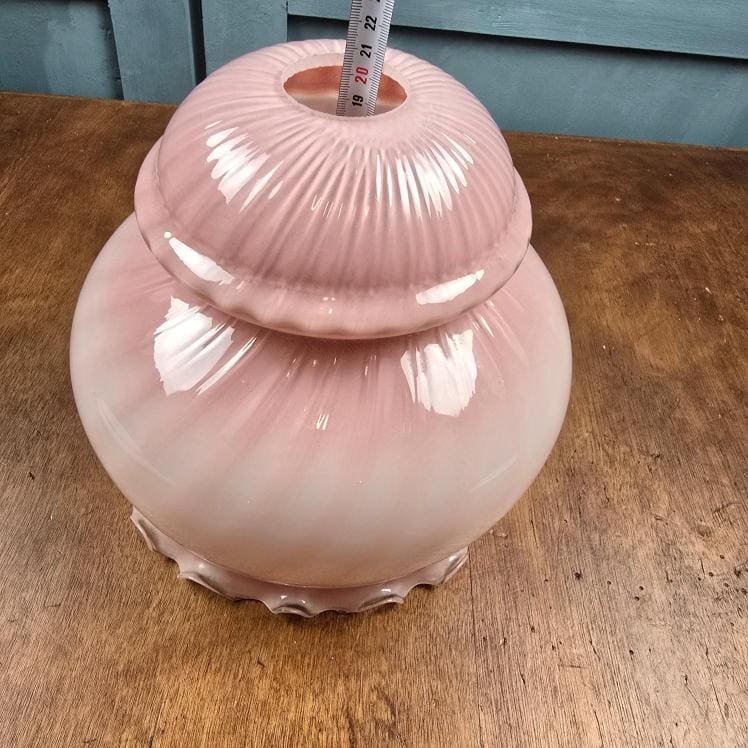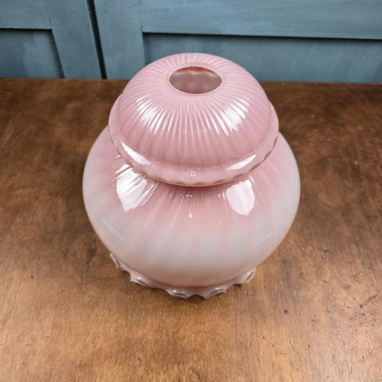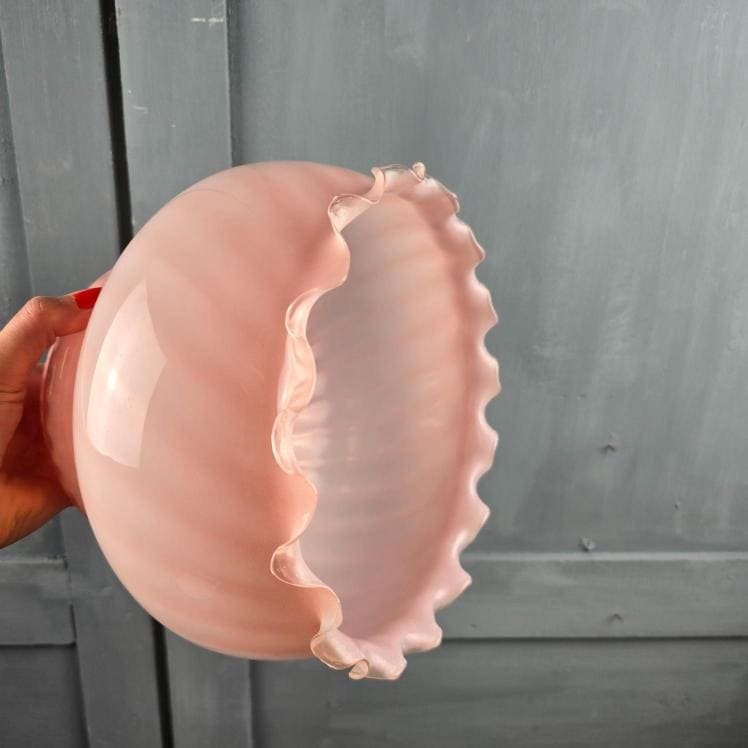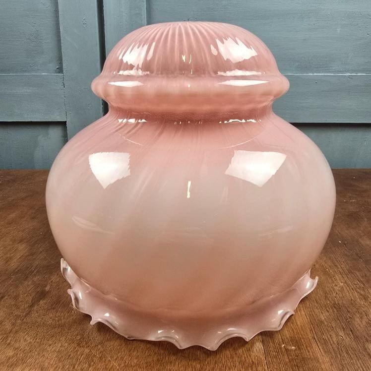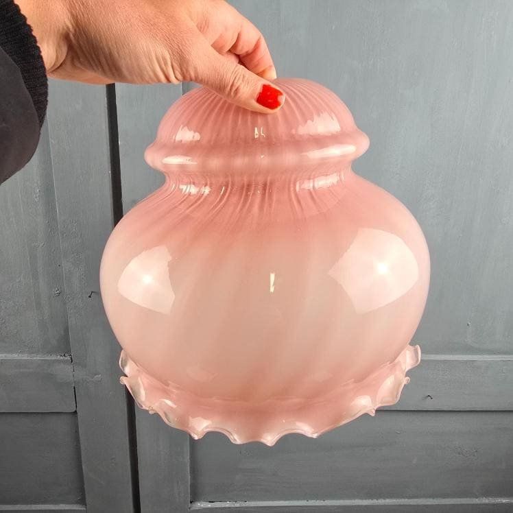 Grand globe ancien en verre rose opalin – Abat-jour suspension bord ondulé – Luminaire vintage bohème